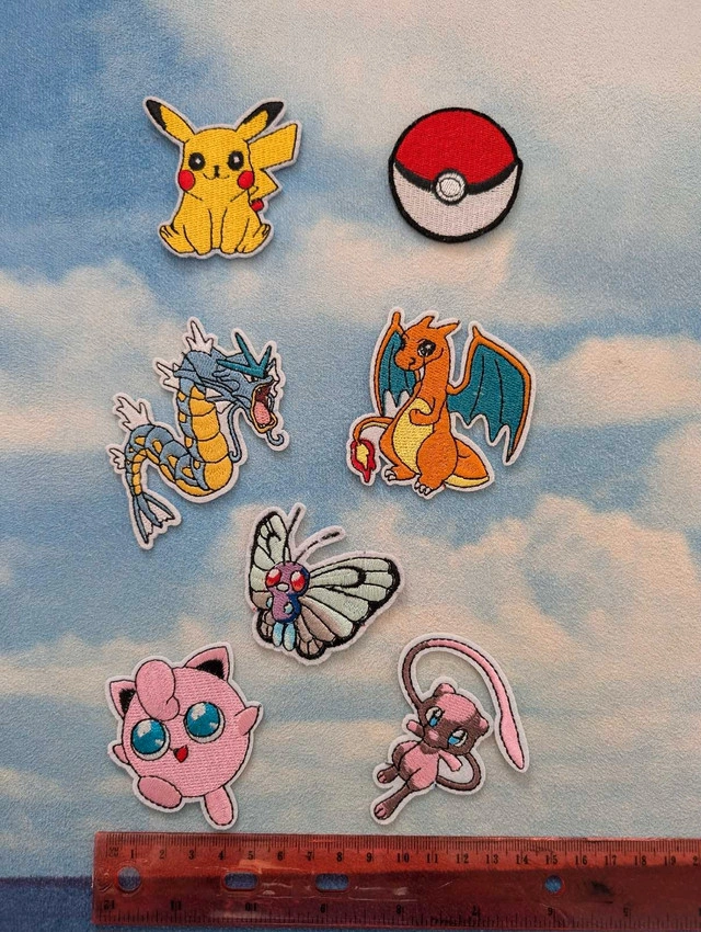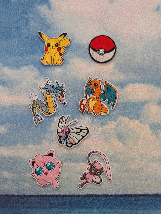 Set of 7 Pokemon patches, including Pikachu, Pokeball ext. average size 4-6cm. Bundle all 7 for $20. Pickup North York Centre (near the subway station)