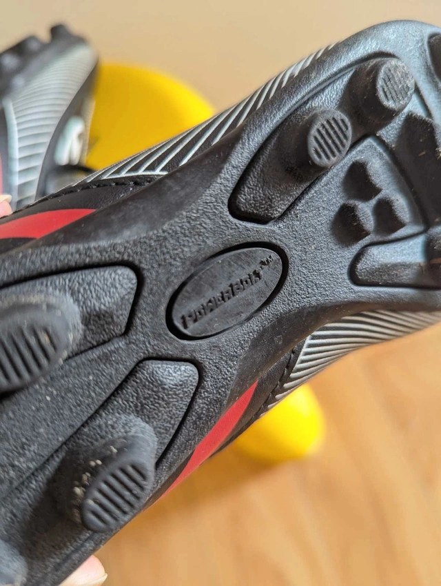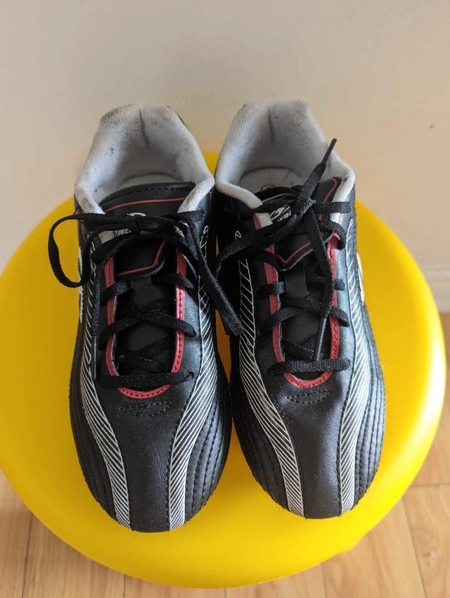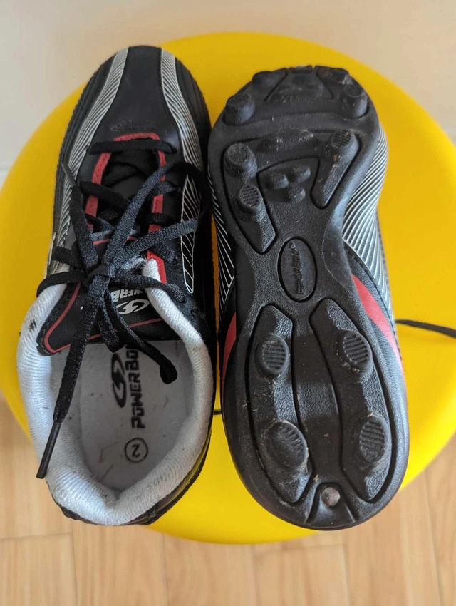Power Bolt Boys size 2 soccer shoes in black manmade material, in very good condition. Pickup only - North York Centre.