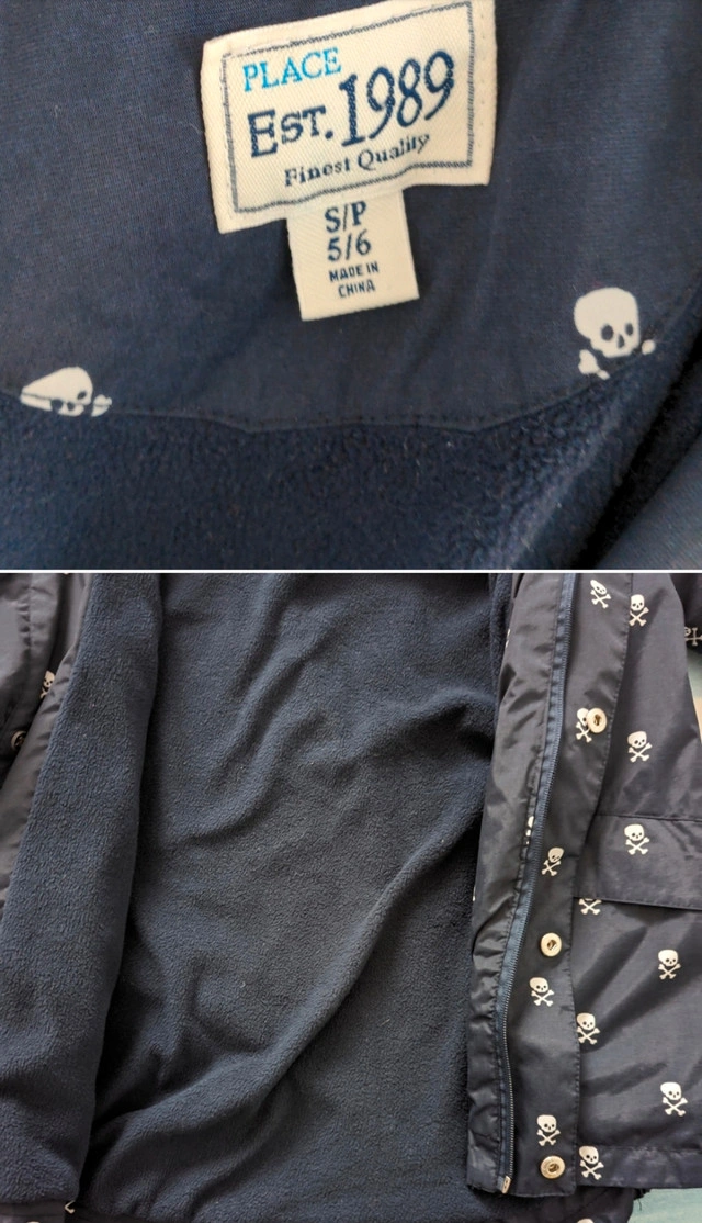 Children's Place 5-6 fleeced rain jacket, with little skeleton prints, good used condition. For Sale By: Owner