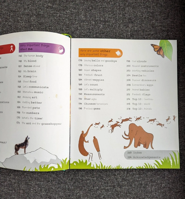 Good used DK Hardcover Encyclopedia of Very Important Things: For Little Learners Who Want to Know Everything Retail $25+ tax. Some stains, not in brand new giftable condition, price reflects. No missing or page tear.