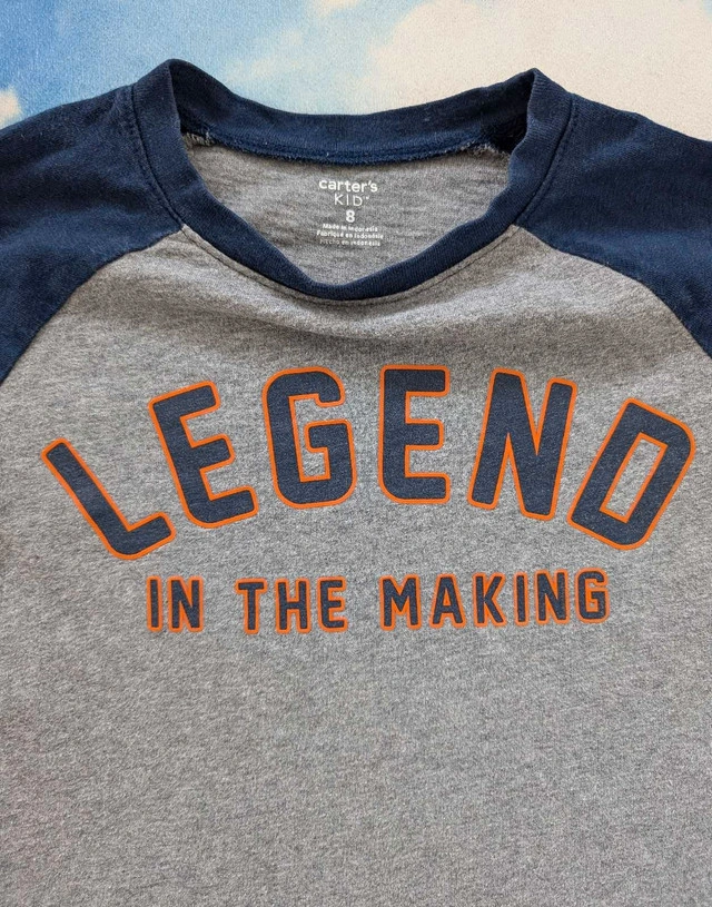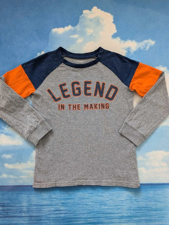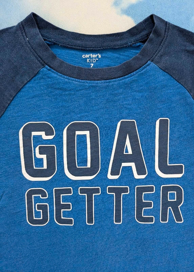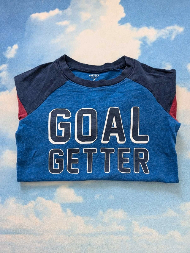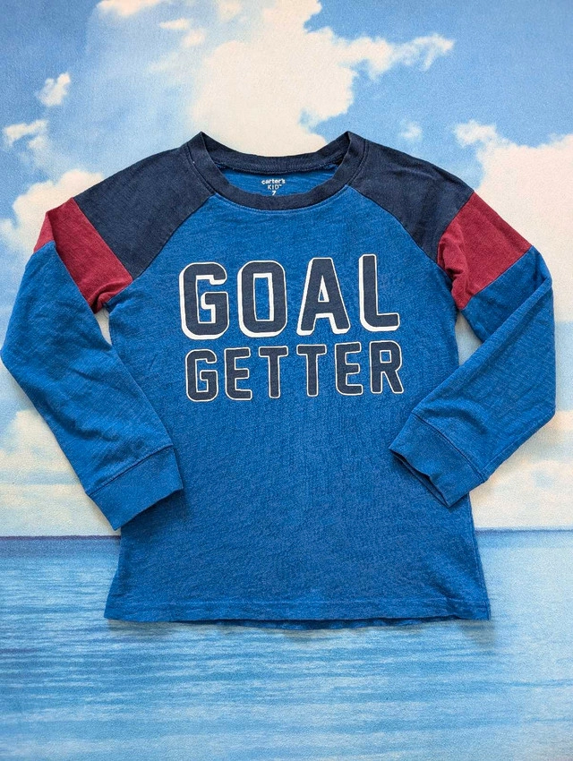 Carter's 7-8Y long sleeves shirt 100% cotton. Size 7: Goal getter Size 8: Legend in the making. For Sale By: Owner