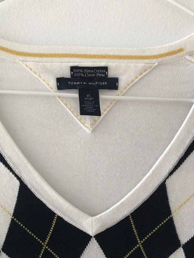 XS. 100% cotton. Try in Tommy store if you are not sure about size. Was over $60+tax. Pickup only North York Centre.