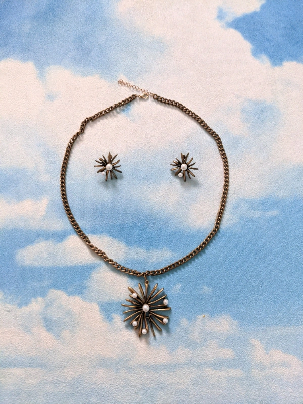 Oscar de la Renta iconic Starburst earnings (not clipons). Necklace is available for separate purchase too, see last picture. If you can see the listing it's available. Pickup North York Centre.