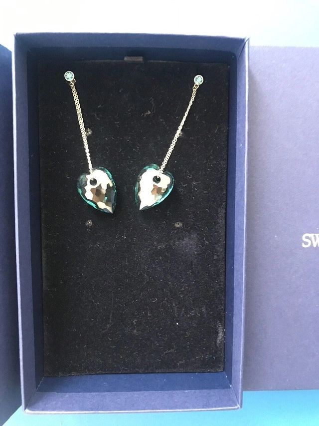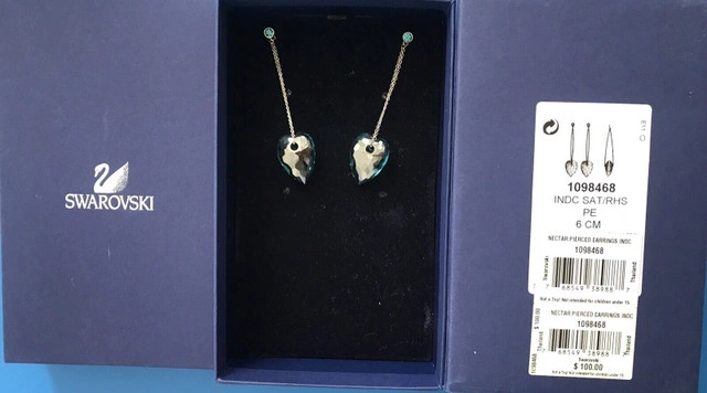 Swarovski Crystal Nectar blue heart earrings. Bought in US. Was USD100. Comes with original box. No receipt any more. Pickup North York Centre.