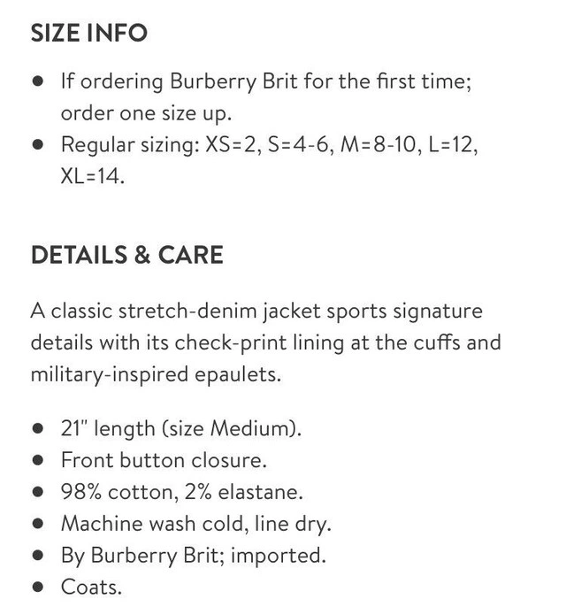 Like NEW Burberry Brit XS Jean Jacket. Size XS (0-2) You can book time for fitting if needed @ North York Centre subway station, IF you agree to the price. For Sale By: Owner