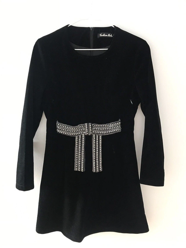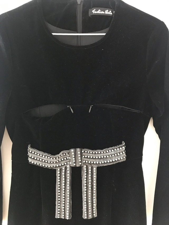 Little Black Velvet Dress with bow for Breastfeeding Moms With invisible zippers in front XS, slim fit, size 0 Pickup only- North York Centre Empress Walk.