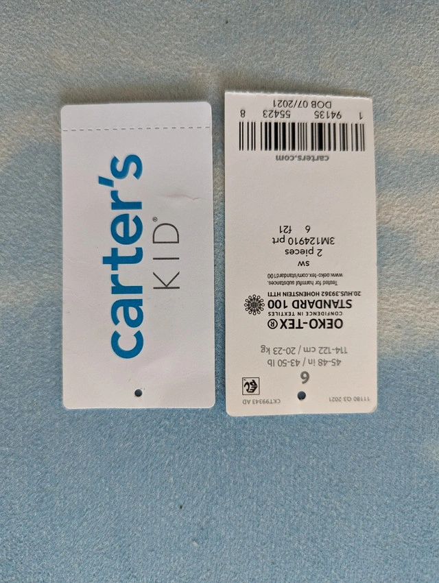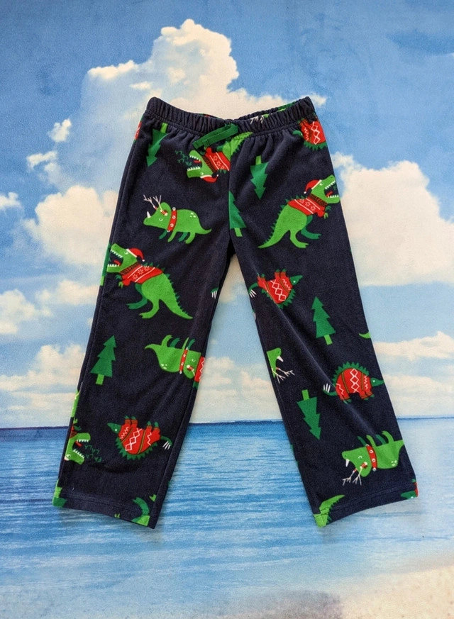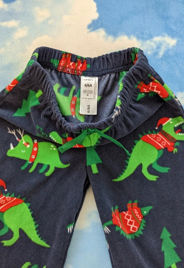 Carter's 6 years old holiday pj pants $10 for 2 pairs, should fit average 5-6 years olds. Used once or twice each and outgrew. Very warm and cute. Price tags cut but can be found, over $12 each. 1. Carter's greywith candy canes 2. Carter's blue fleece pj pants dinosaurs in Christmas hats