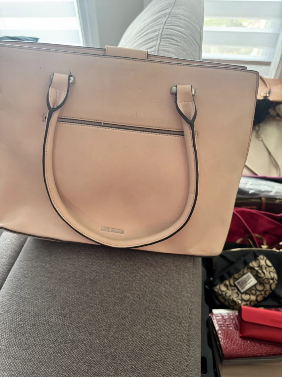 Selling a cute Steve Madden tote bag! It's a light pink colour and in good condition. Perfect for everyday use or as a stylish accessory