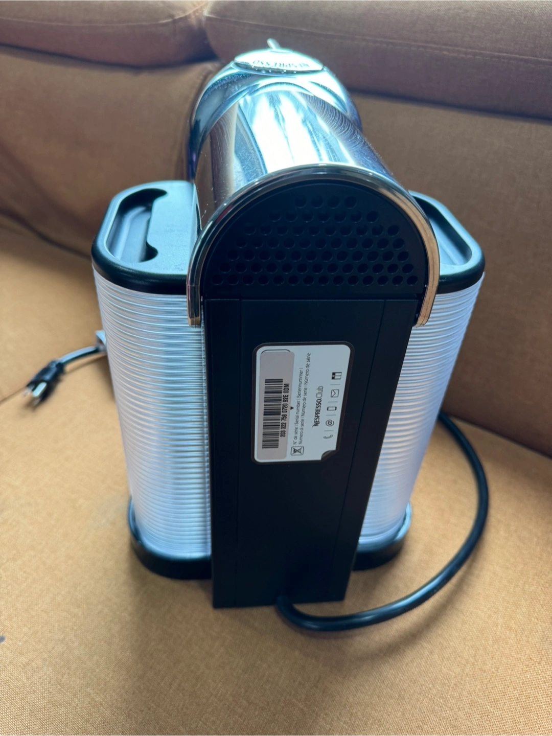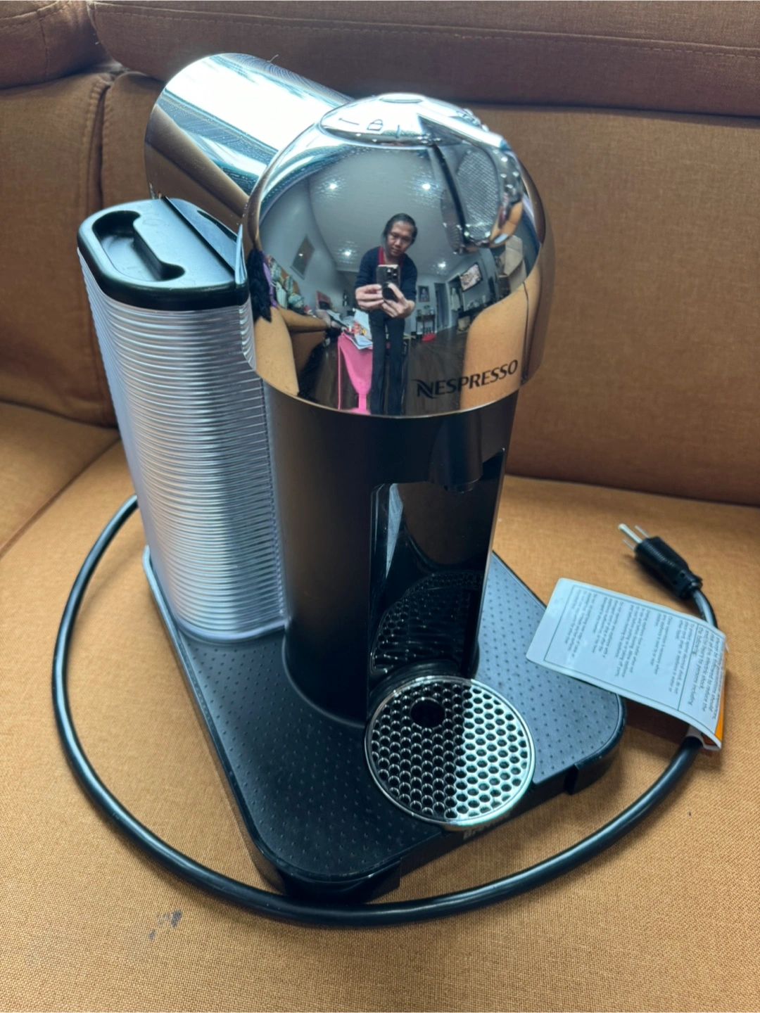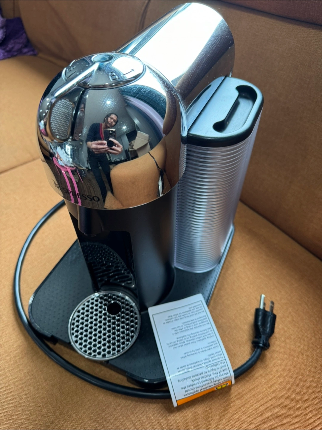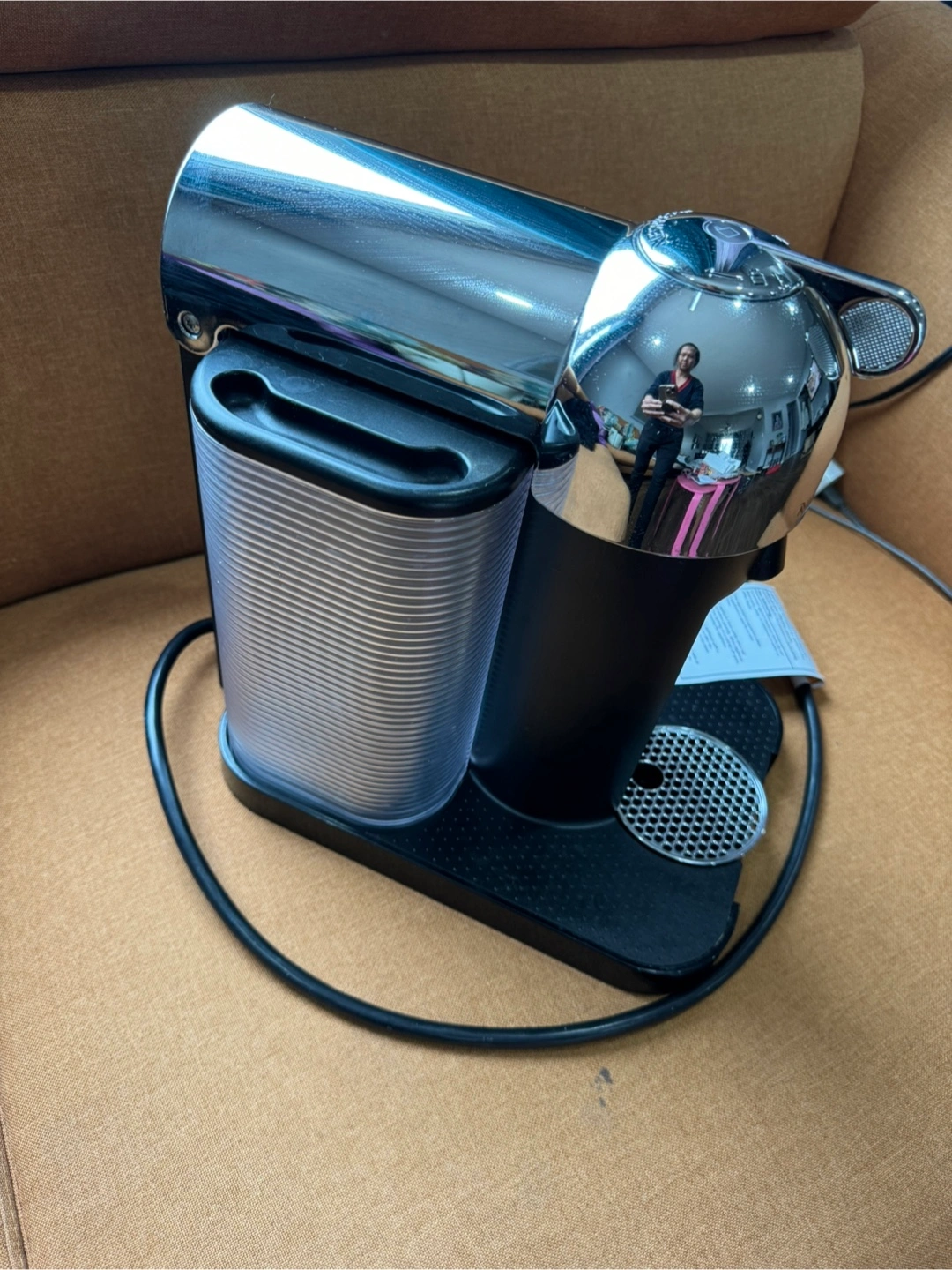 Selling a Nespresso Vertuo coffee machine made by Breville! It's in great condition and comes with the box and manual. Enjoy delicious coffee with the touch of a button. This machine uses Vertuo capsules and offers a variety of cup sizes. It features Centrifusion technology for optimal extraction and a crema-rich coffee experience
