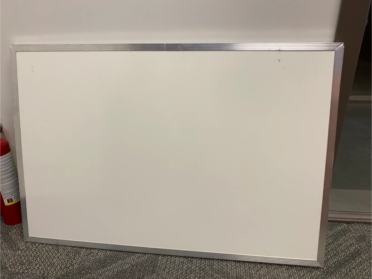 Selling a whiteboard with a silver frame. It's in good condition and ready for a new home! Perfect for brainstorming, teaching, or just jotting down ideas. This is 2ft by 3ft.