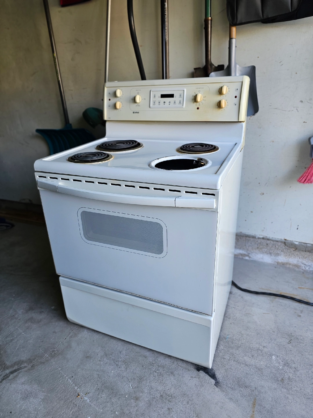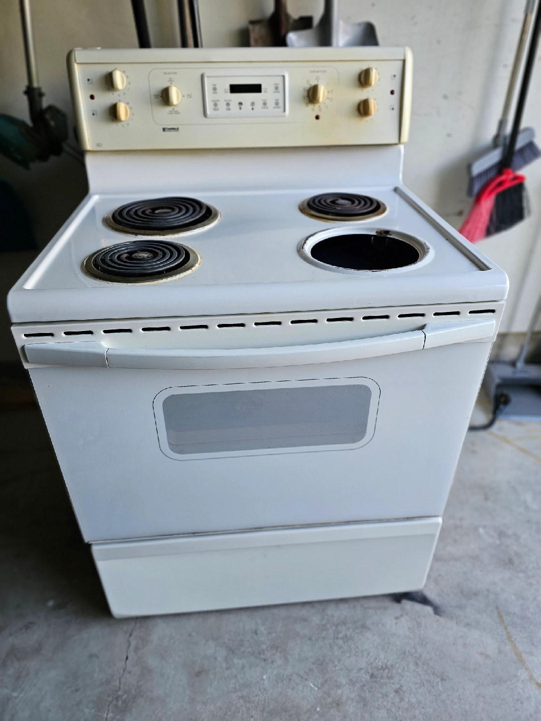 Selling a Kenmore electric range in white. It has four coil burners on top and an oven below. Perfect for cooking up your favourite meals!