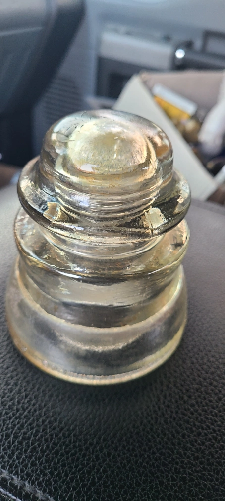 Selling a vintage glass insulator. It has a unique shape and design. It's in good condition and would make a great addition to any collection