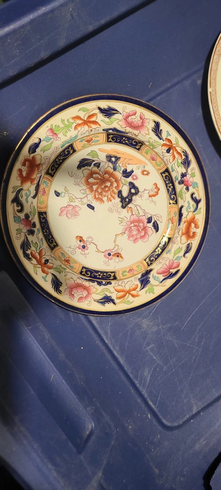 Selling a vintage Royal Doulton plate. It has a beautiful floral design with a navy blue and gold rim. Perfect for display or adding to your collection!