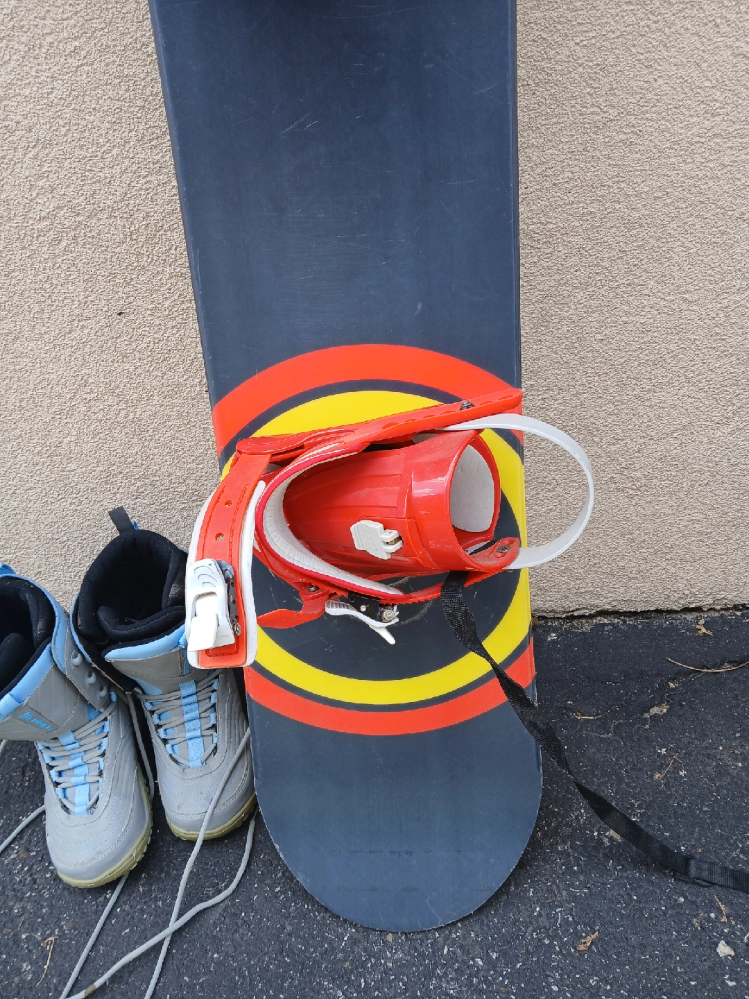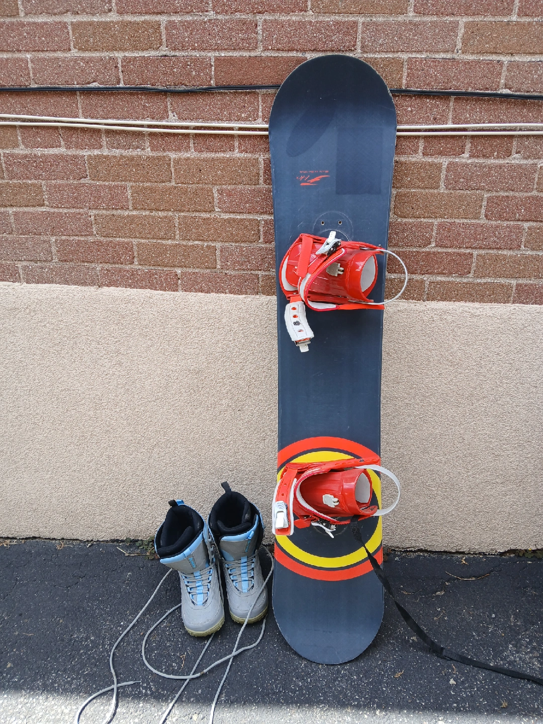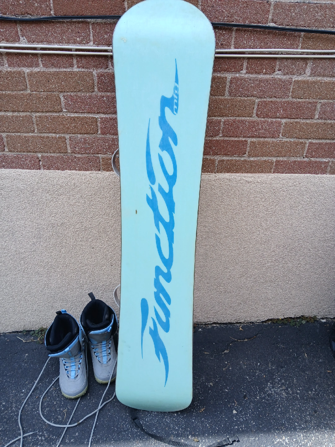 🏠Pickup is near Front and Spadina Snowboard is about 57 inches tall total, snowboarding boots are size 8 women's Get ready for a fun winter with these!
