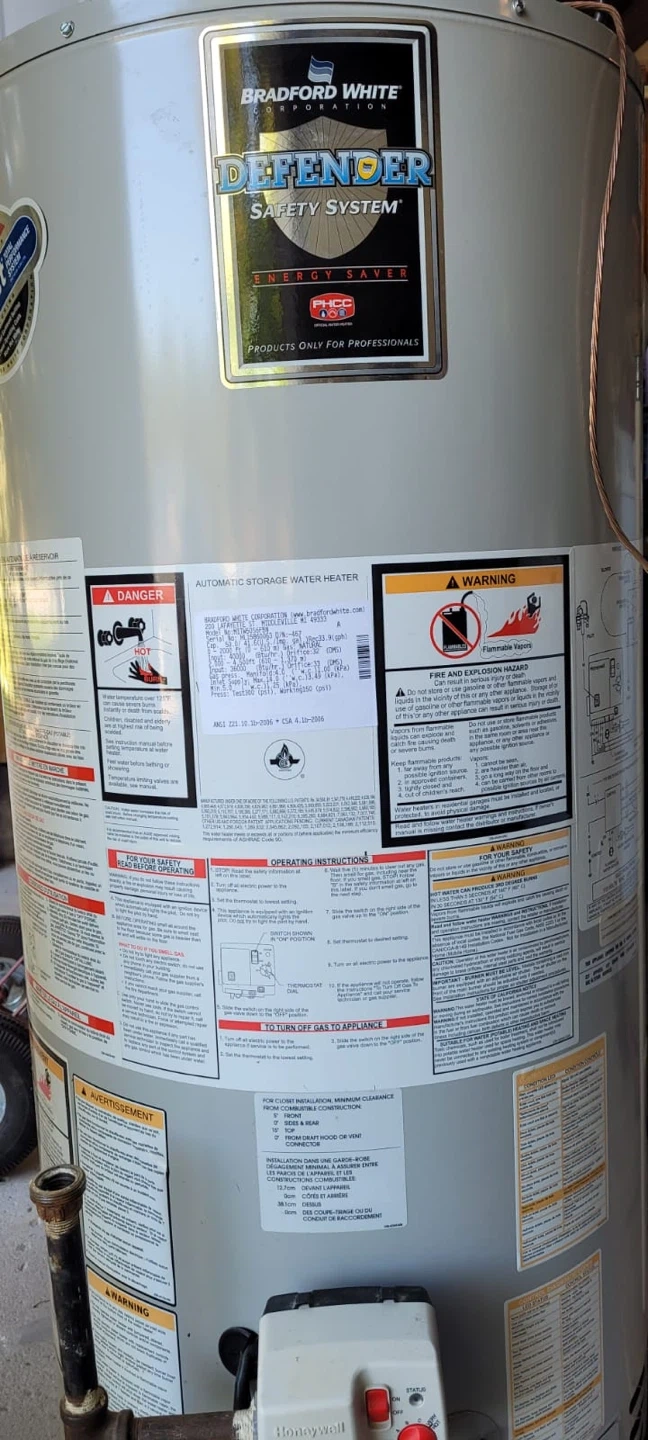 Selling a Bradford White Defender Safety System water heater. It's in good working condition and ready for its next home. Perfect for professional use.