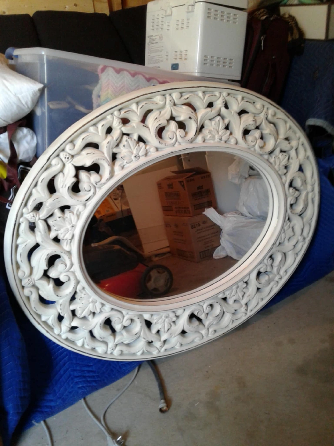 ** lowered price: $175 for both or $100 each now ** 🏠Pickup only. Located near Dufferin and Eglinton in Toronto. Beautiful large oval mirror with a victorian inspired style. 4 feet by 3 feet Good condition overall. Has bits of paint wear, can be easily painted over / still looks good like this I find 🏠Pickup only -- near Dufferin and Eglinton Gorgeous mirror in very modern beautiful style. I believe it is the Genoa mirror worth around $490+tax +$95 shipping. Perfect condition. Around 44 by 33 inches.