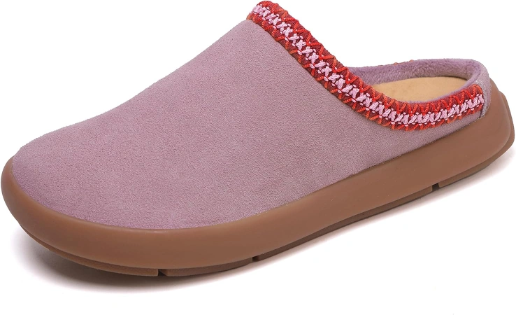 Cozy UBFEN slippers in a lovely purple suede leather! These are a size 8. They feature indoor house arch support and a stylish clog design. Comes with the original box! Brand new!