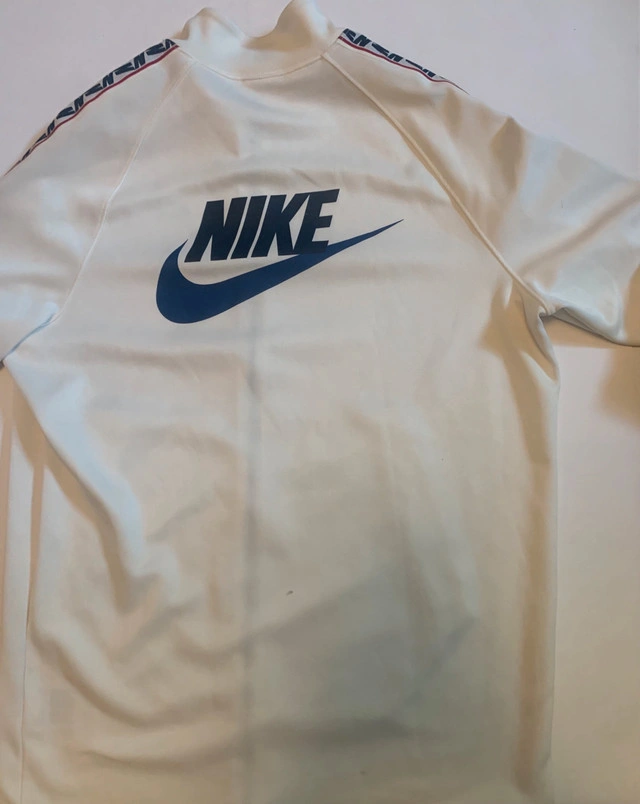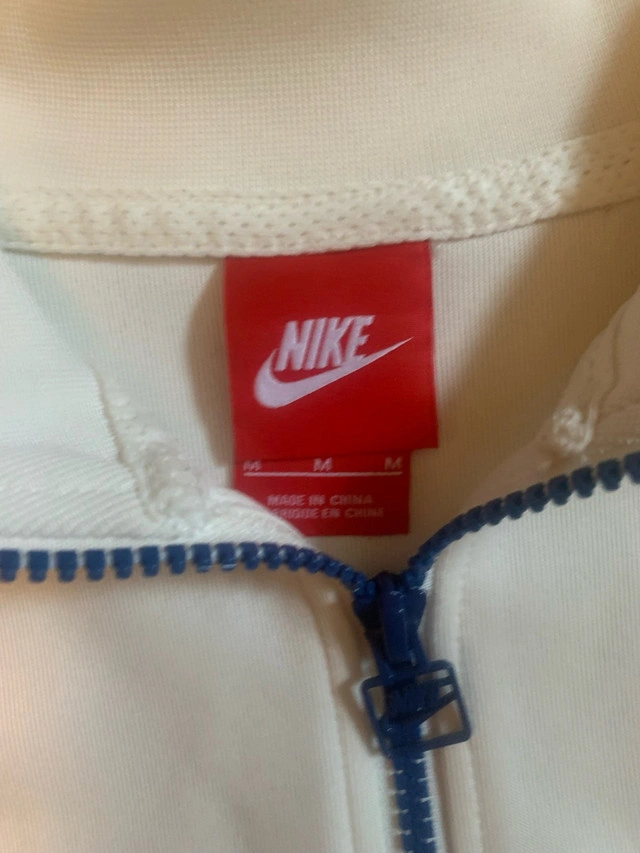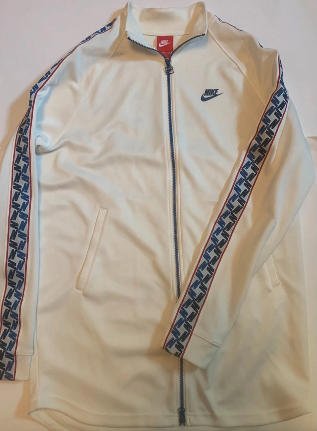 Brand: Nike Size: Medium Colour: White with Blue Accents Style: Track Jacket Condition: Used - Good Size: Medium Cash accepted: Yes Cashless payment: