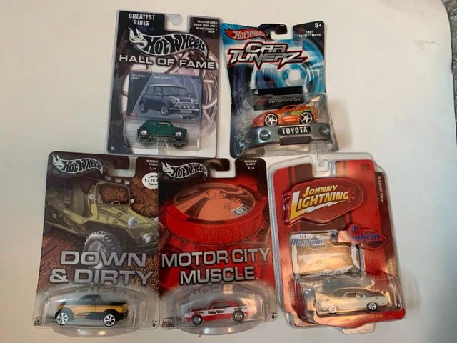 Send offers * Hot Wheels Hall of Fame - Mini Cooper * Hot Wheels Car Tunerz - Toyota Supra * Hot Wheels Down & Dirty - Custom * Hot Wheels Motor City Muscle - Dodge Dart * Johnny Lightning Condition: New For Sale By: Owner Cash accepted: Yes