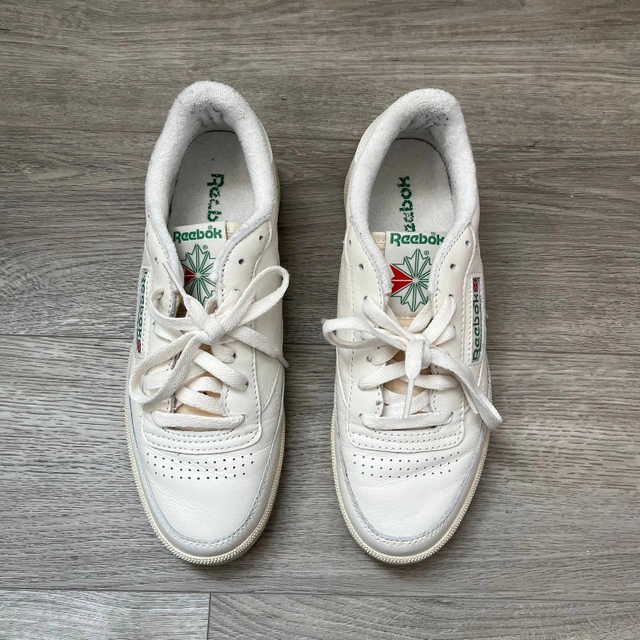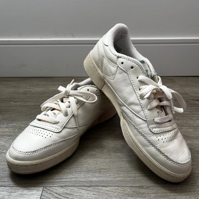 Step into a pair of Reebok Club C 85s, size 9 US, where classic style meets everyday comfort. These iconic sneakers feature a clean, minimalist design with a durable leather upper, perfect for adding a touch of retro flair to your casual fits. These shoes are in excellent condition and ready for plenty more adventures. Specifications: * Brand: Reebok * Model: Club C 85 * Size: US 9 / UK 6.5 / EUR 40 * Colour: Off-White * Upper Material: Leather * Style: Sneaker If the ad is up, the item is available.