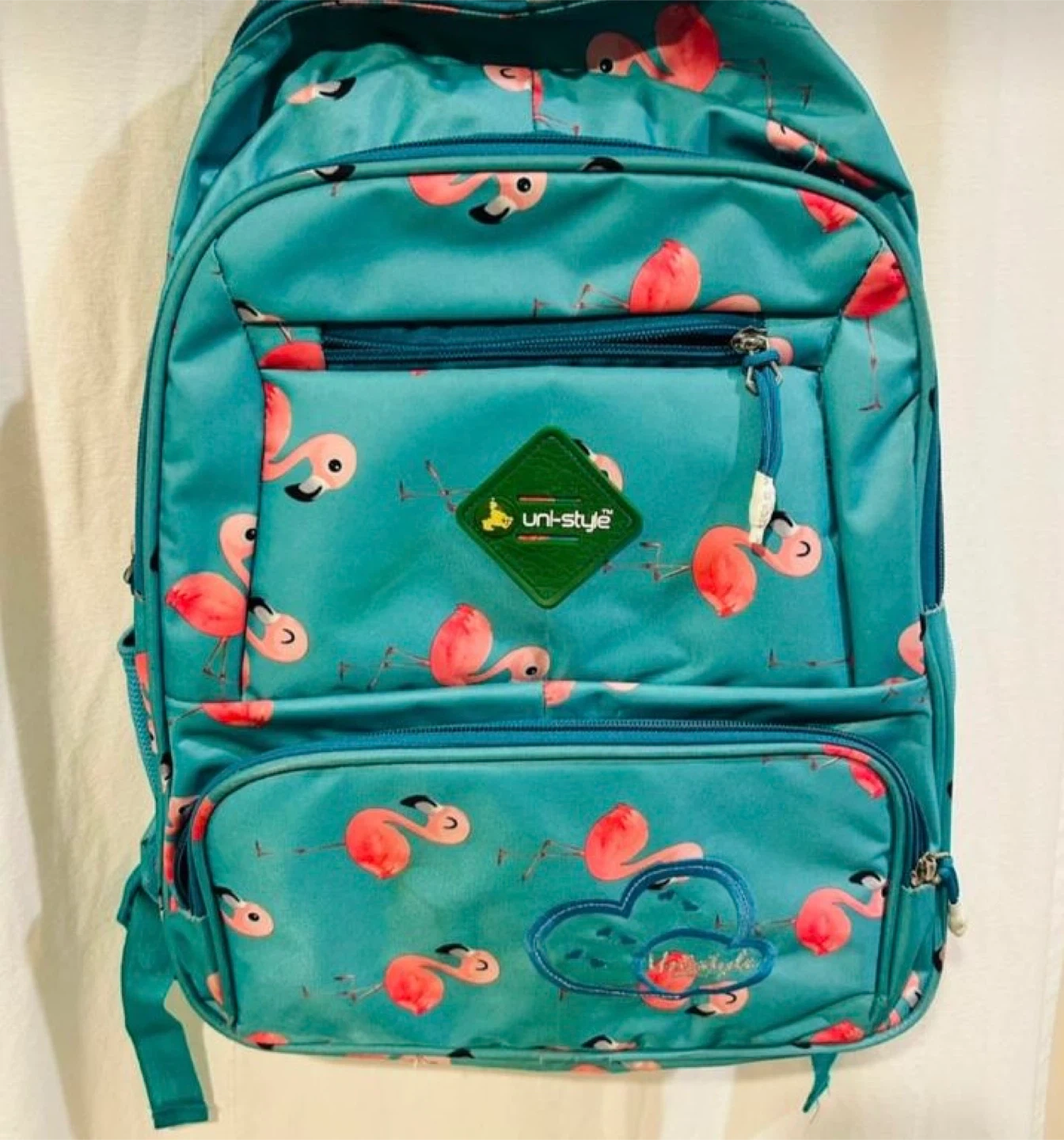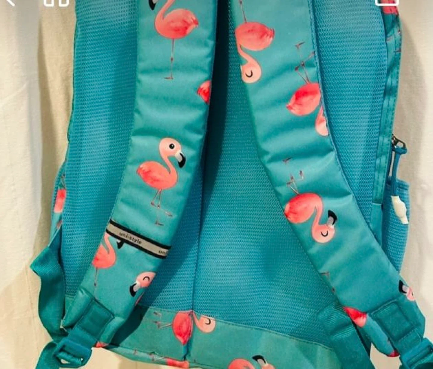 Here's a cute Uni-Style backpack with a fun flamingo print! It's perfect for school or travel, with plenty of room for all your essentials. It's in great condition and ready for a new home