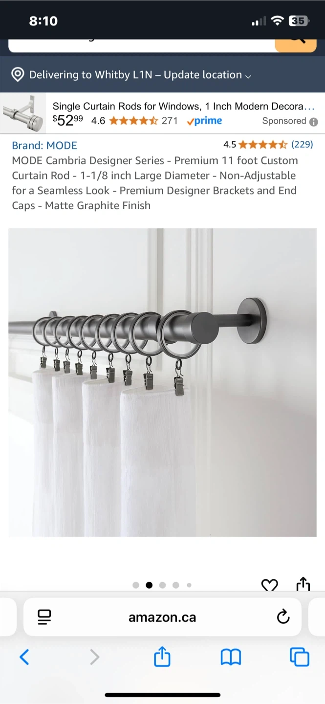 Selling a MODE Cambria Designer Series curtain rod in matte graphite finish. It's 11 feet long and has a 1-1/8 inch large diameter. This premium custom curtain rod is non-adjustable for a seamless look and includes premium designer brackets and end caps. Retails for $268.57