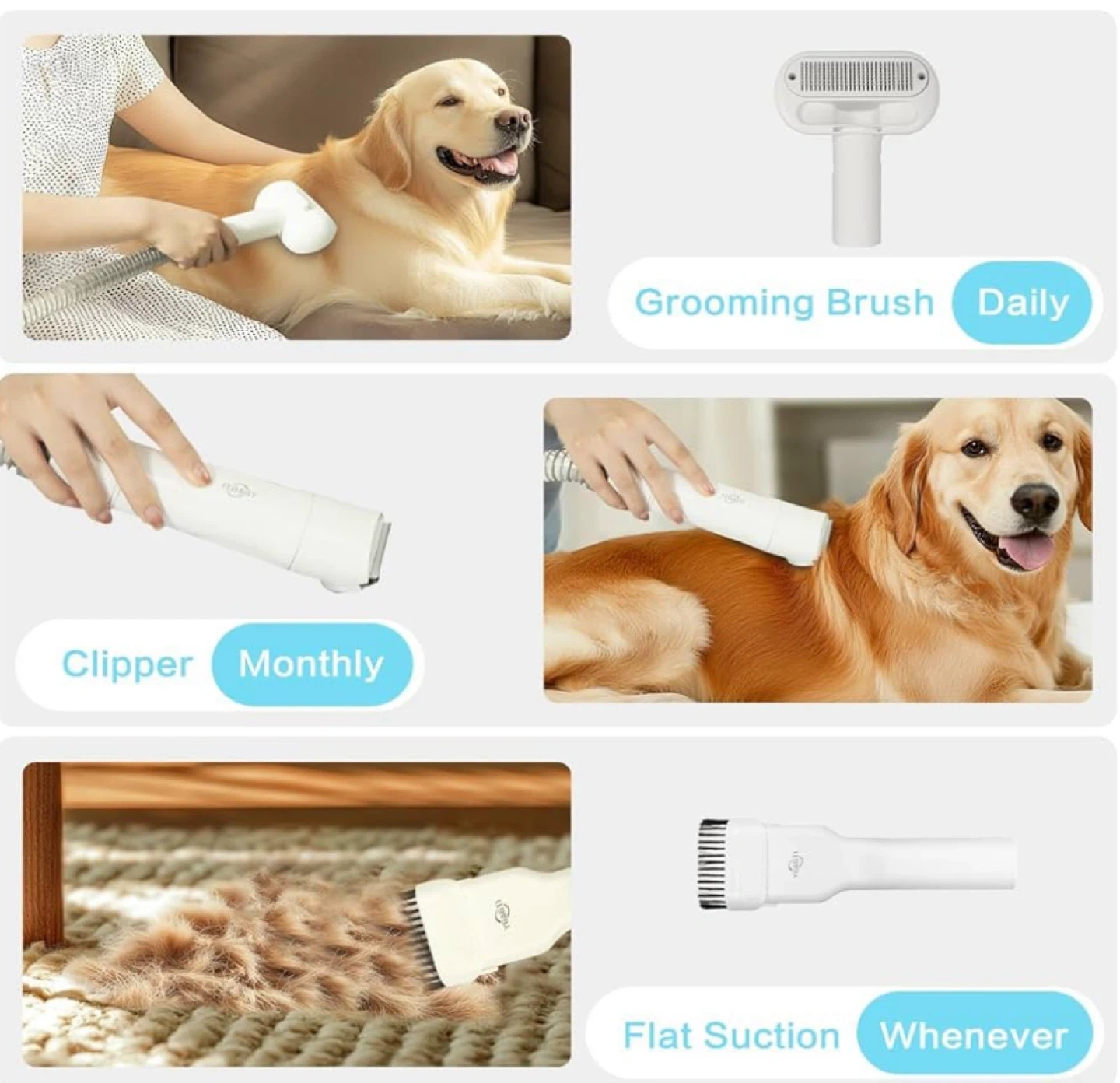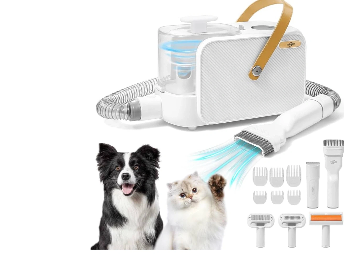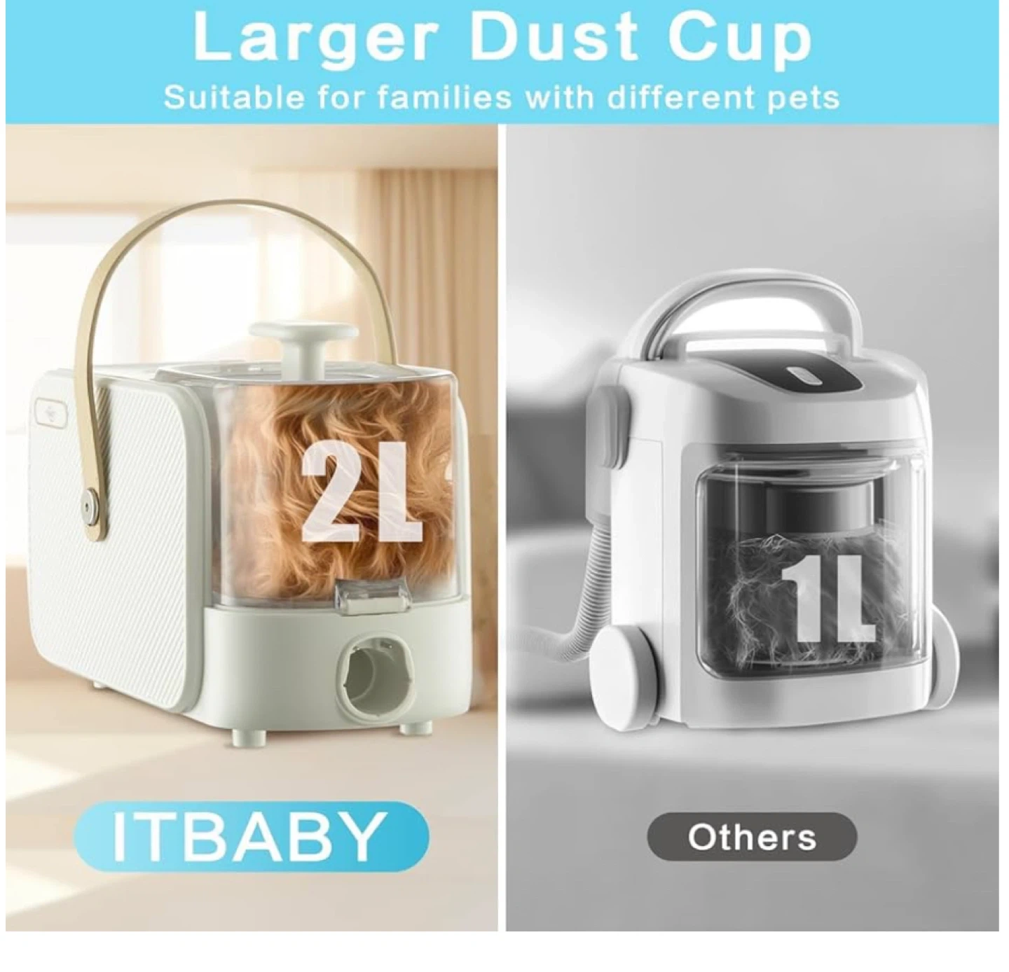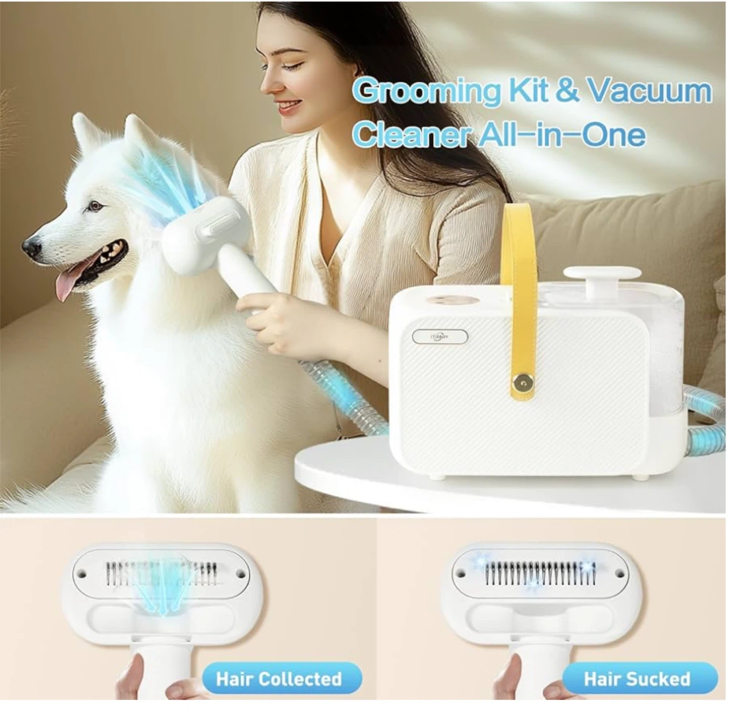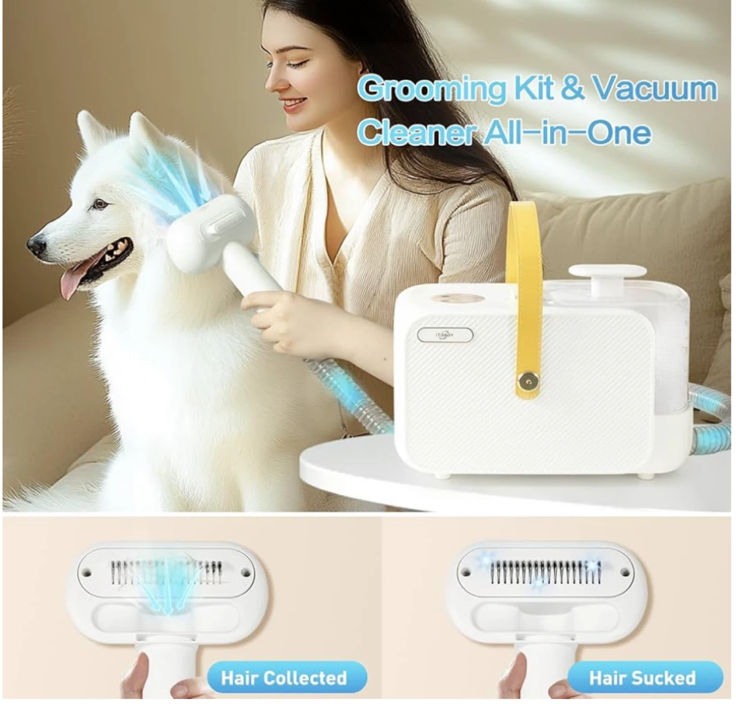 Keep your furry friends looking their best with this ITBABY Dog Grooming Kit! This 2L pet grooming vacuum is perfect for dogs with nail grinder brush. It features 15000Pa powerful dog vacuum for shedding grooming and quiet 5in1 pet grooming tools. Comes with 6 sizes of guide combs and 5 pet grooming tools including rolling brush, flat suction rod, dog clippers, dematting comb, and grooming brush