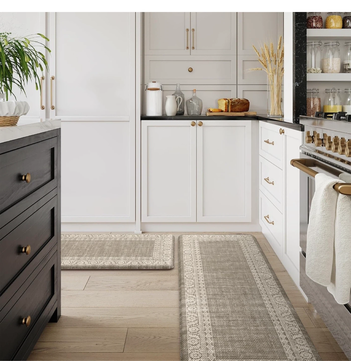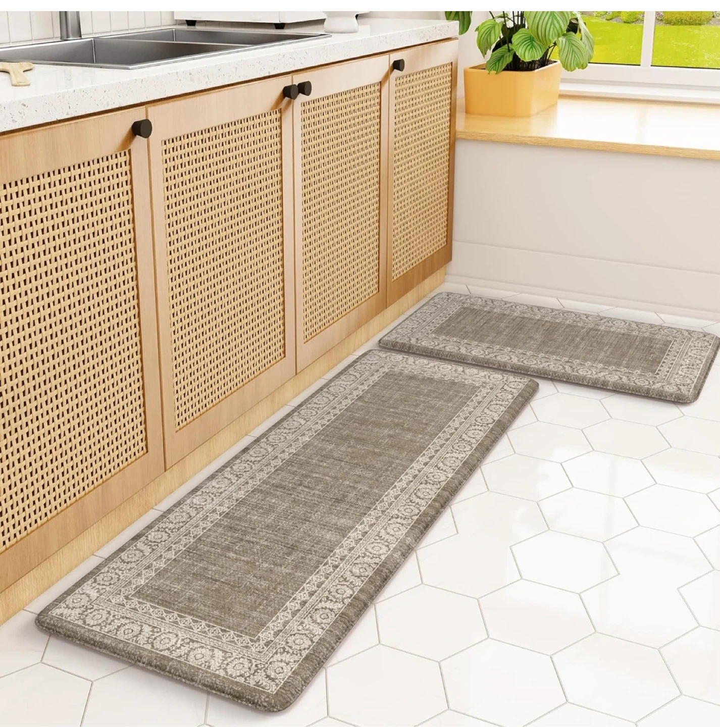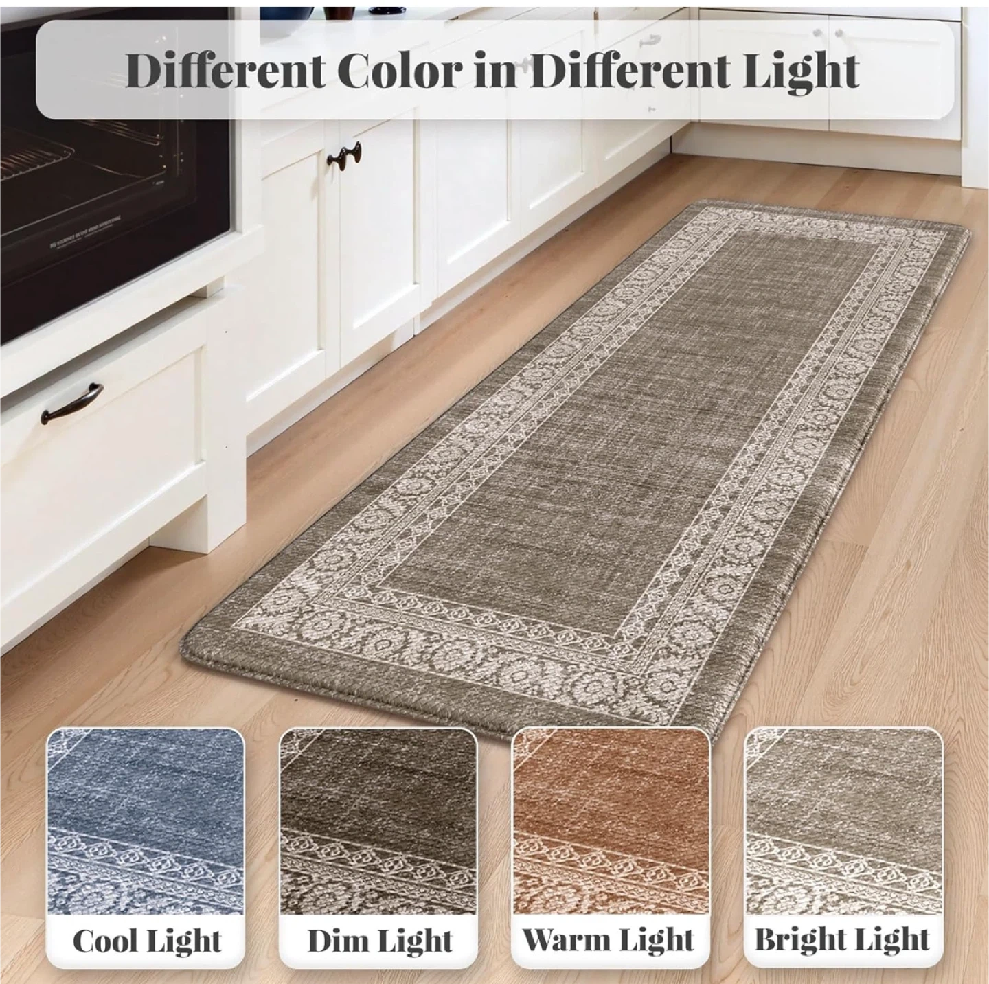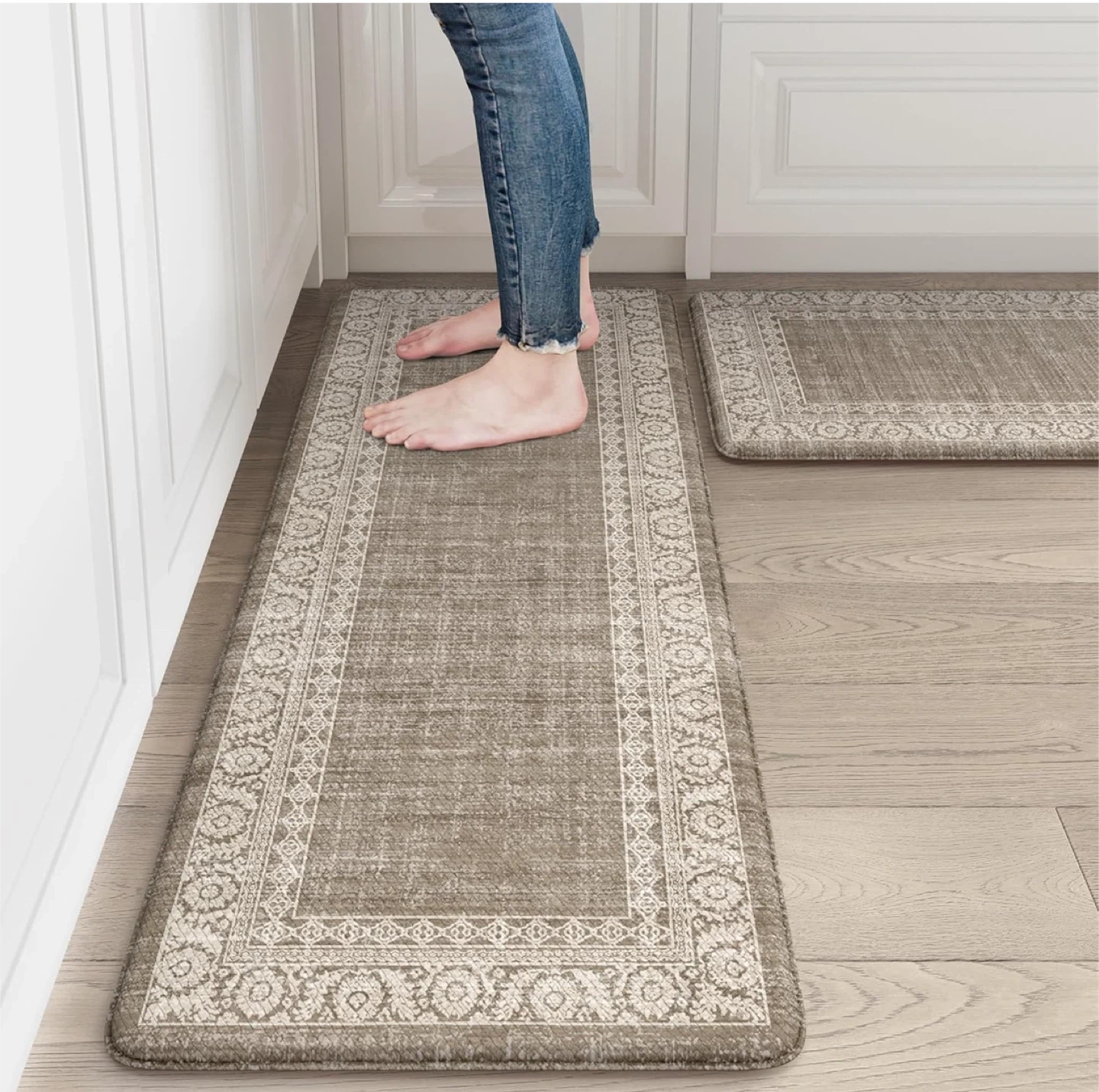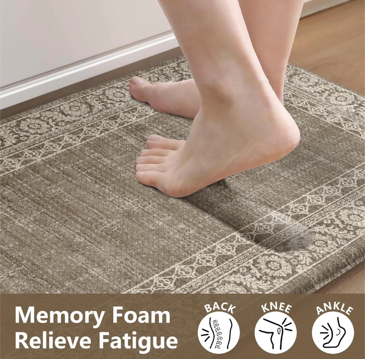 Add some comfort to your kitchen with this memory foam runner rug! It's beige and features a decorative pattern. Perfect for relieving fatigue while you're cooking or doing dishes