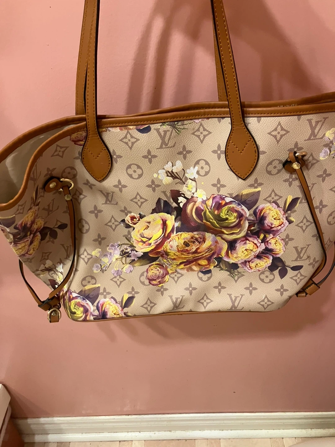 Selling a Louis Vuitton inspired (not licensed) bag with a beautiful floral design! It's in great shape and ready for a new home. The inside is spacious, with a zippered inner pocket, perfect for carrying all your essentials. Cash only, p/up only. Thornhill, Yonge St & Elgin St.