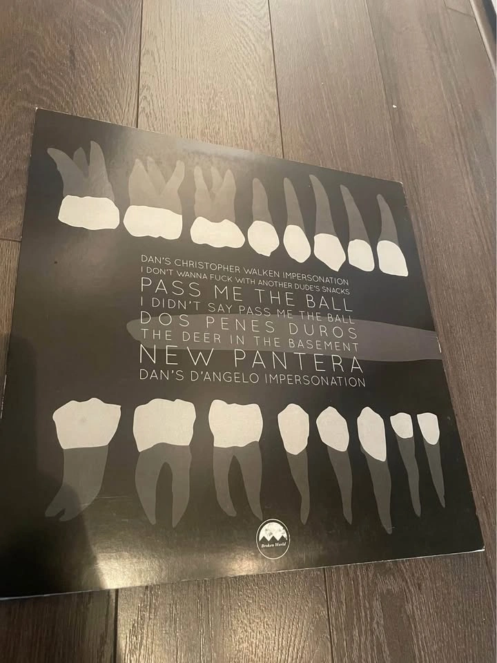 📍 Pickup: West Queen West, Toronto 🎶 2013 US Broken World Media pressing white vinyl (BWM021) 🛞 Limited-run edition — popular among emo/math‑rock collectors 🎧 Tracklist: A1 Dan’s Christopher Walken Impersonation A2 I Don’t Wanna Fuck With Another Dude’s Snacks A3 Pass Me the Ball A4 I Didn’t Say Pass Me the Ball B1 Dos Penes Duros B2 The Deer in the Basement B3 New Pantera B4 Dan’s D’Angelo Impersonation