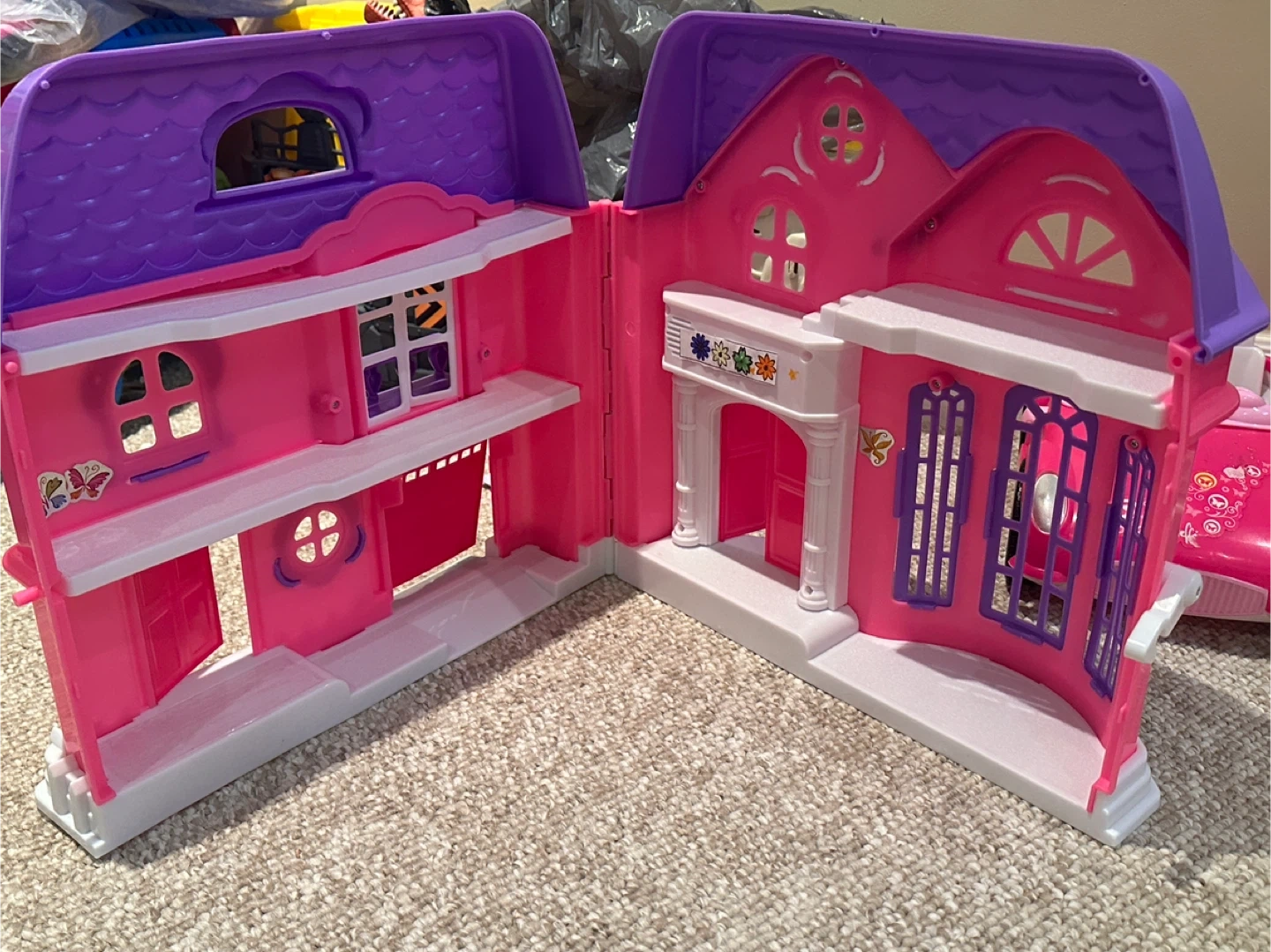Selling a bundle of girls toys and accessories. Includes a giant size pink doll house, branded dolls, kaleidoscope, a blue storage case, three hairbrushes, Mr. Potato Head parts, three rings for party wear and more. Everything must go! Great condition! More kids stuff available too, check my listing.