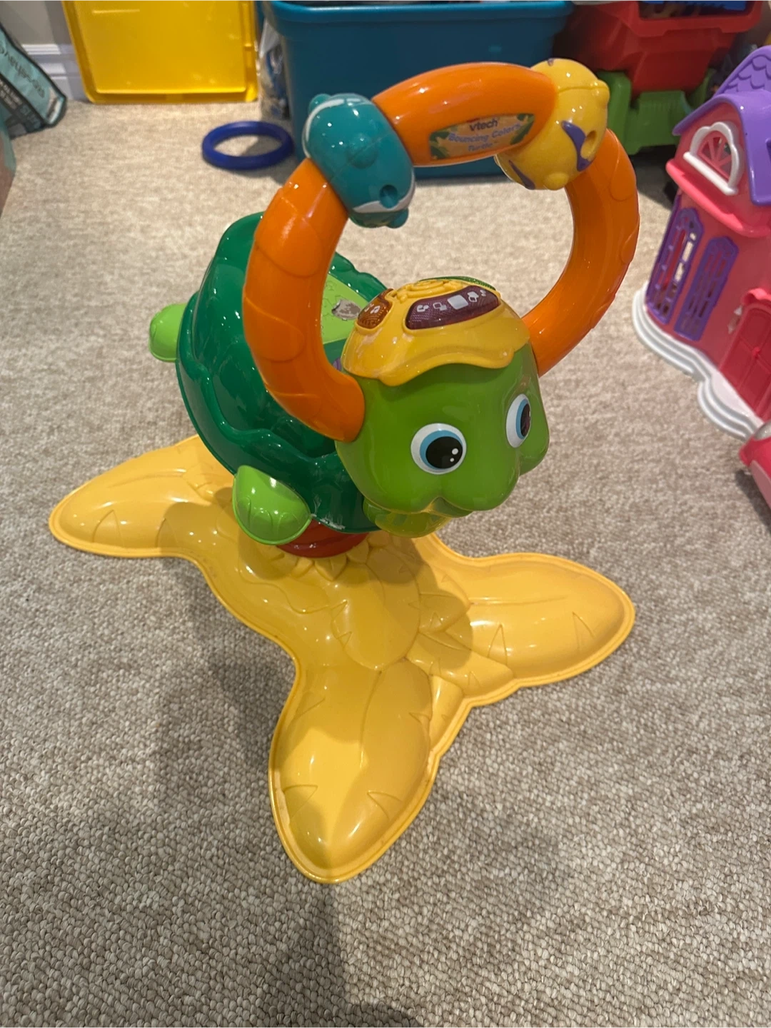 Here's a VTech Turtle ride-on toy, with sound/music options, keeps little one busy. Everything must go! Great condition! More kids stuff available too, check my listing.