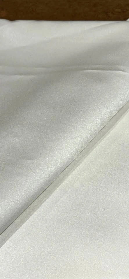 60” wide luxury matte satin in pearl white in formal wear weight. Suitable for dresses, skirts, jackets. Listing price is for 4 meters. Pick up at 5695 River Grove Ave.