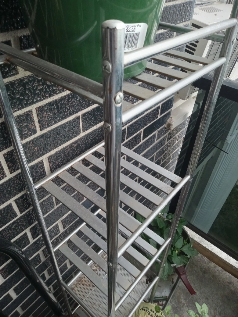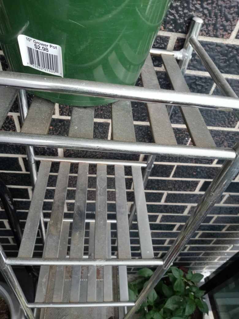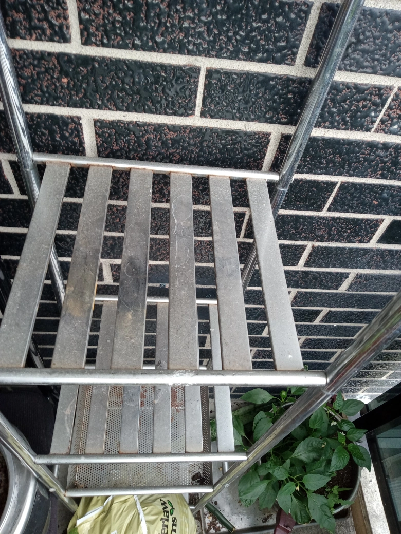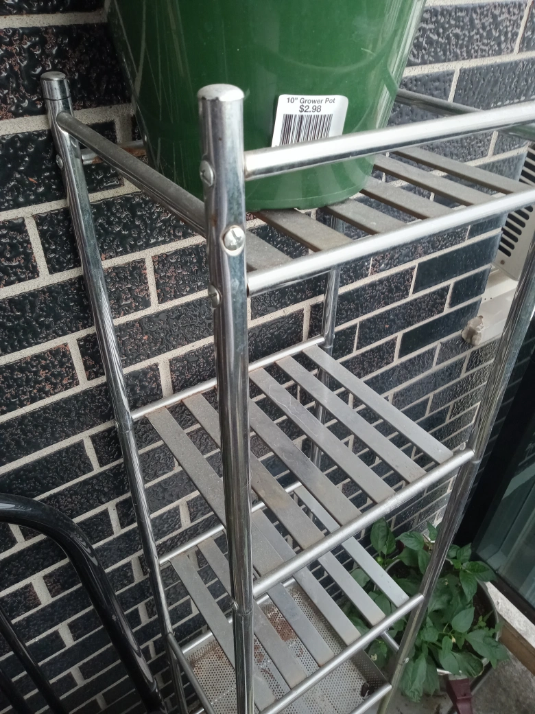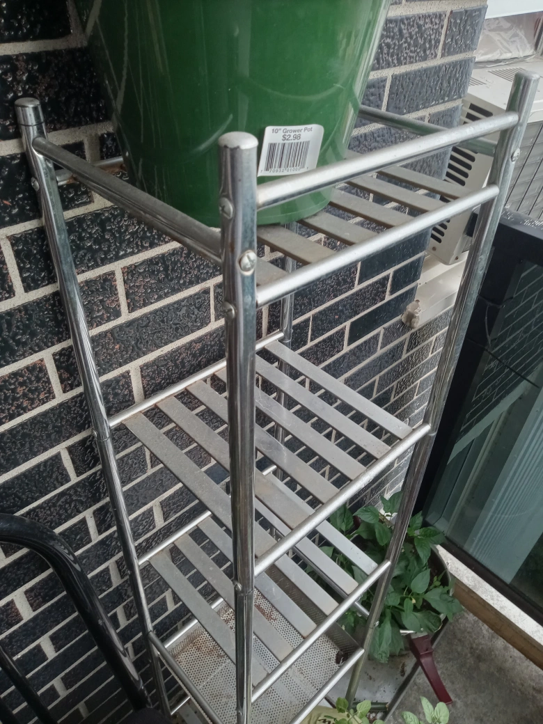 Selling a metal plant stand, perfect for organizing your plants. It has a few tiers to maximize space and is in good condition. Great for indoor or outdoor use!