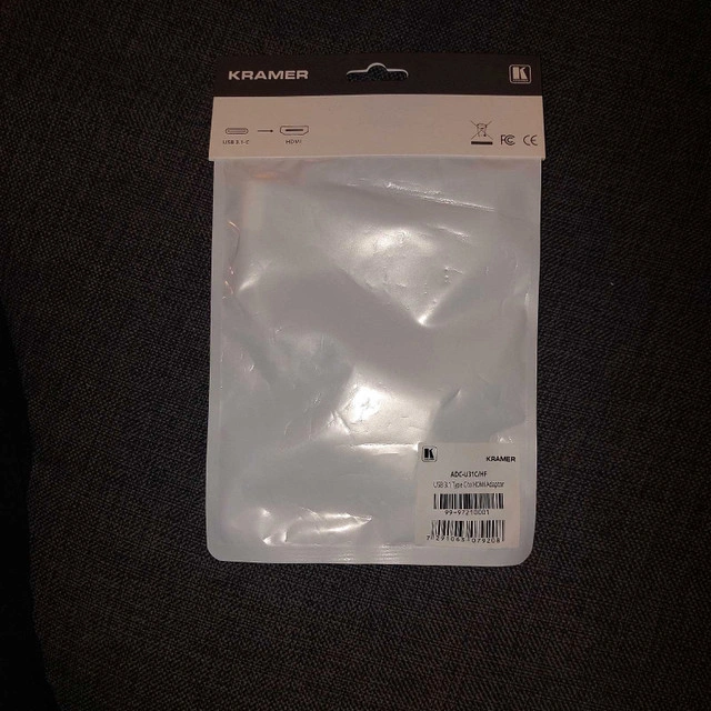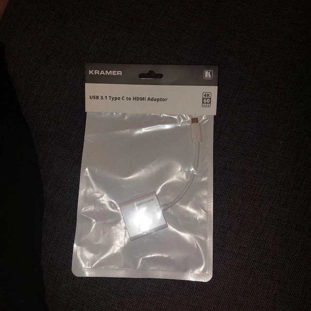 This new Kramer USB 3.1 Type-C to HDMI adapter supports 4K at 60Hz, ensuring high-quality video output from your device. * **Resolution**: Up to 4K @ 60Hz * **Connector Type**: USB 3.1 Type-C to HDMI * **Brand**: Kramer It's always a good idea to have an extra adapter, just in case your tech decides to play hide-and-seek! Rest assured, if you're seeing this ad, the item is still available!