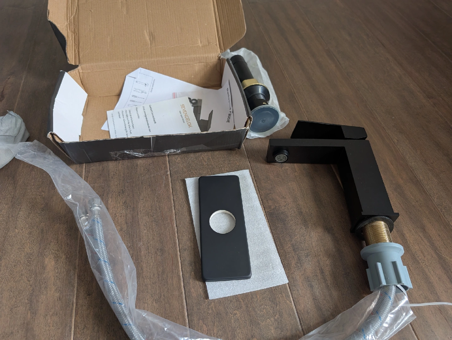 Brand new matte black bathroom faucet for sale. Single hole, single handle basin, plate and pop-up drain included, $50 FIRM. faucet, water, reno, vanity, counter, water, bathroom, sink, renovation, hose, plumbing, kitchen, drain, shower, tub, bath, bathtub, swivel, pull down, pull out, spray, nozzle, handle, Moen, Delta, dishes, column, tower, massage, jets, LED, temperature, valve, rainfall, waterfall, wand, spout