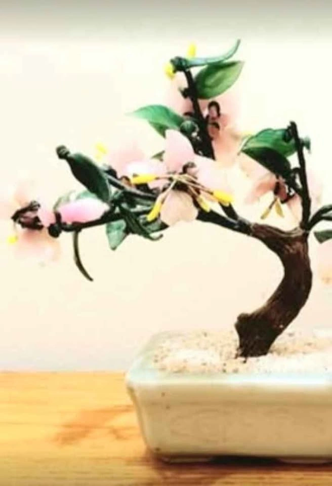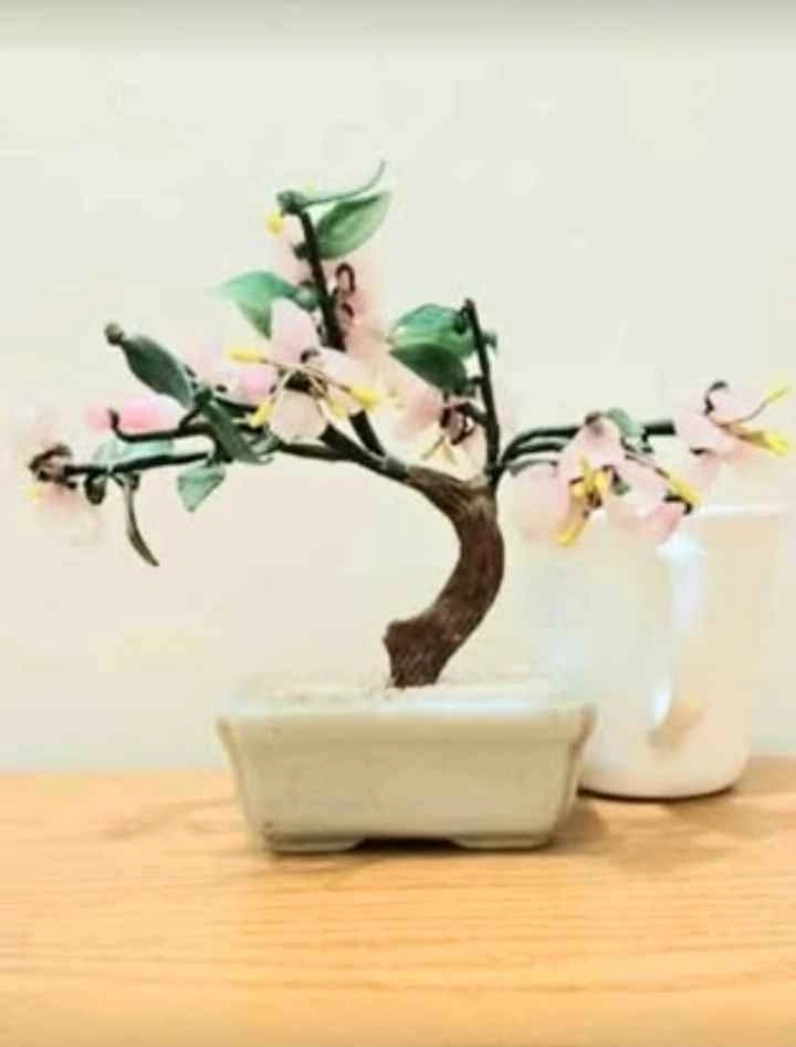 Vintage, Decorative, Hand Crafted Bonsai Sherry Blossom Tree and a Celadon Ceramic Pot. Decorative, Household Mug For Size Reference (1st picture). Please check out my other posts.