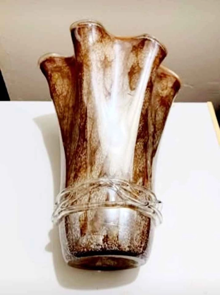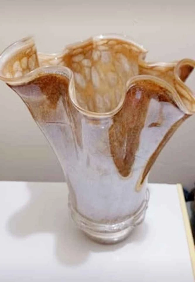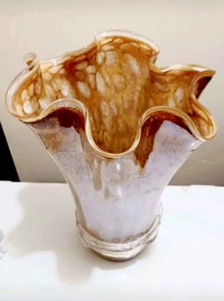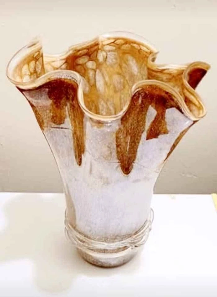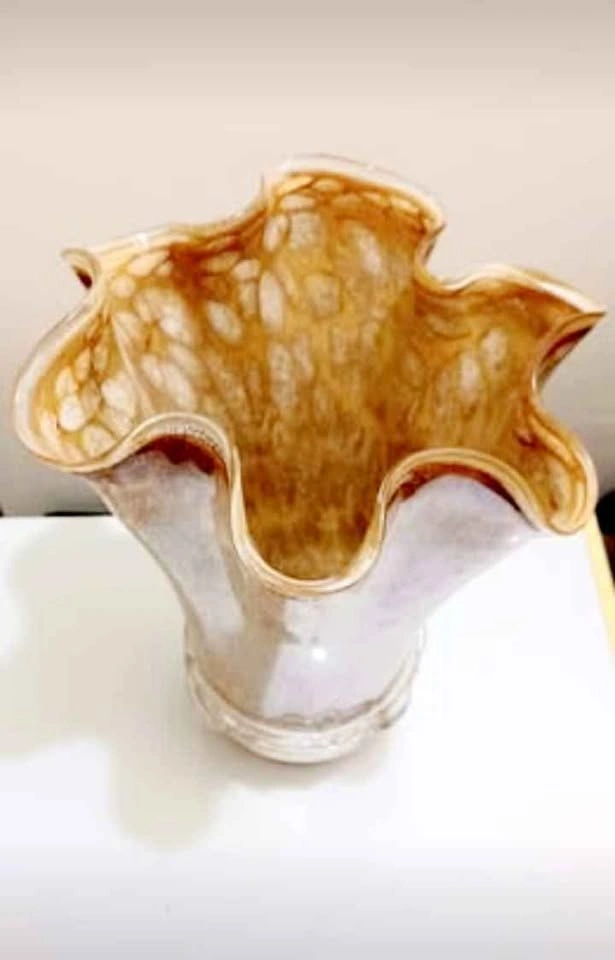 Vintage, Very Rare, Household Mouth Blown Iredescent Crystal , Hand Crafted ,Tall Josefina Krosno , Ruffled Edge Murano Crystal Vase. Height : 14", Width : 10" Excellent Condition , no chips or cracks. Please check out my unique items!