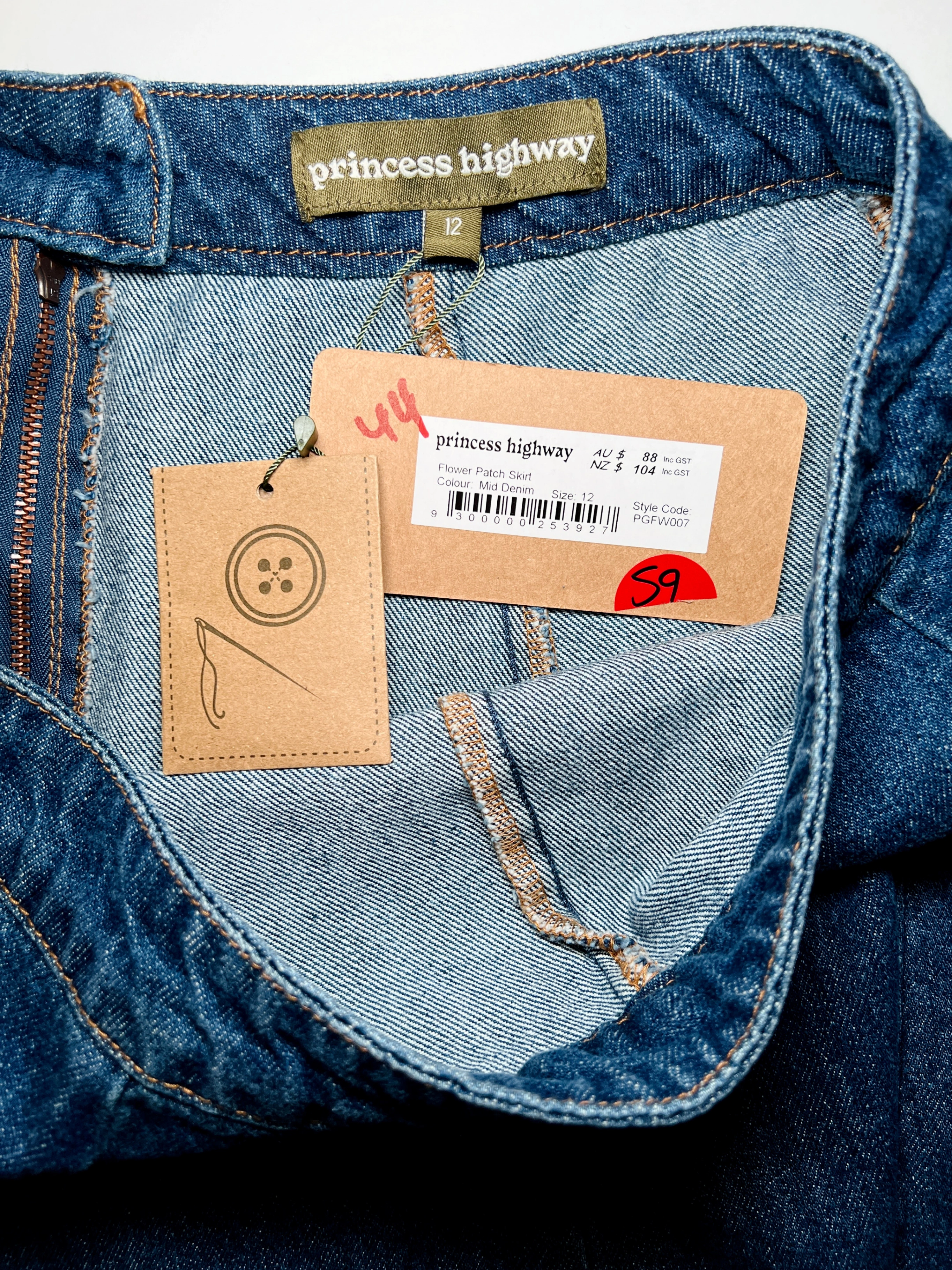Brand new, unworn. Original retail price was $84. Imported from Australia. Size AU 12/medium. Fits waist 29" and hips 41" High waisted with back zipper and button closure. Cash only.