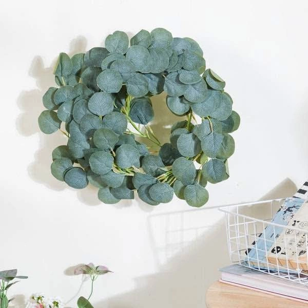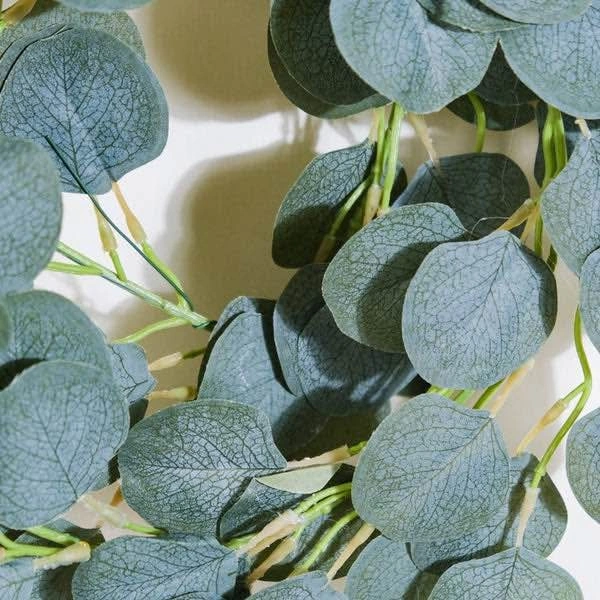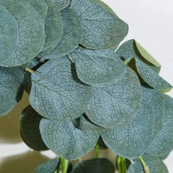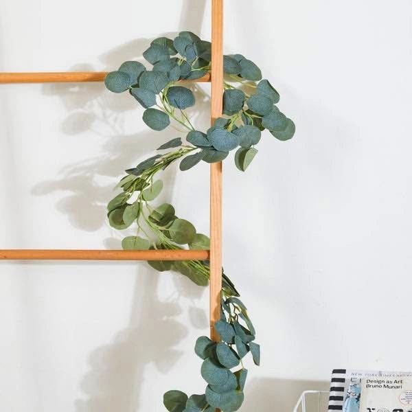 The artificial leaf vine has been crafted with expertise to provide a touch of nature to one's home. The circular variegated leaves with their patterns look realistic and are adorned on a PVC stem that can be bent and decorated as per one's wish. The artificial eucalyptus leaf vine is ideal for decorating bookshelves, cabinets, and vases. The artificial leaf vine may also be used to decorate the dining table or may be hung on the wall as a wall decor piece. Properties: - Looks natural & realistic - Can be hung on walls, doors, swings, mirrors - Suitable for party decoration - Easy to maintain - Will not fade Nestip: Use the leaf vine surrounding a photo frame to create an exquisite decor. Size: 180cm L Colour: Green Material: PVC, ribbon Products included: 6ft vine x 3 pieces