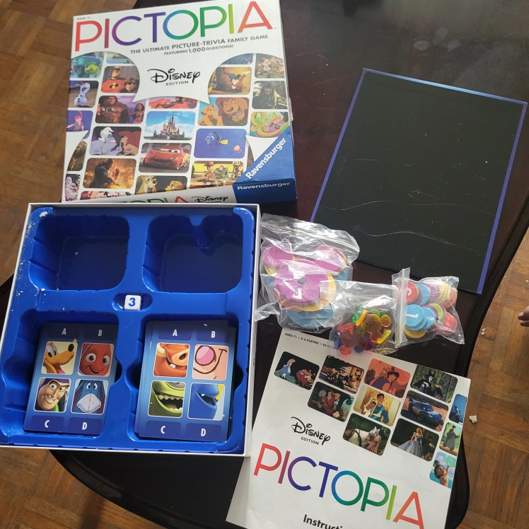 Selling a Disney Pictopia: The Ultimate Picture-Trivia Family Game! It includes over 1,000 questions and is suitable for ages 7 and up. Perfect for family game nights!
