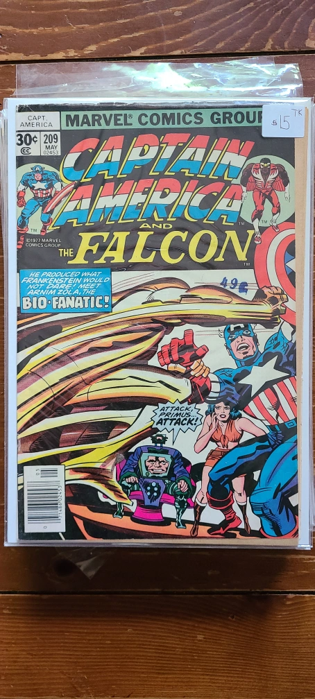 Selling a vintage Marvel Comics Group Captain America and Falcon comic book, issue #209. It's from May 1977 and appears to be in good condition. The cover price was 30¢. There's a tag on it for $15.