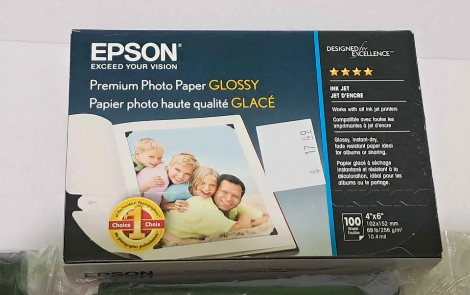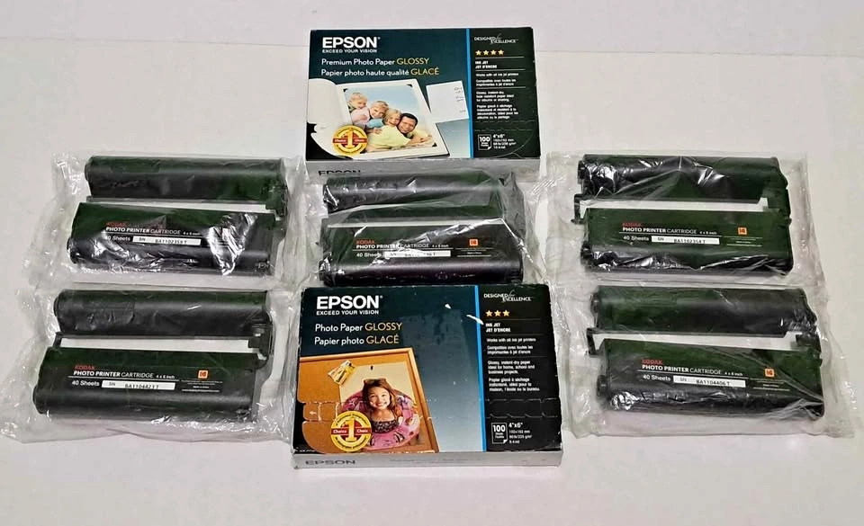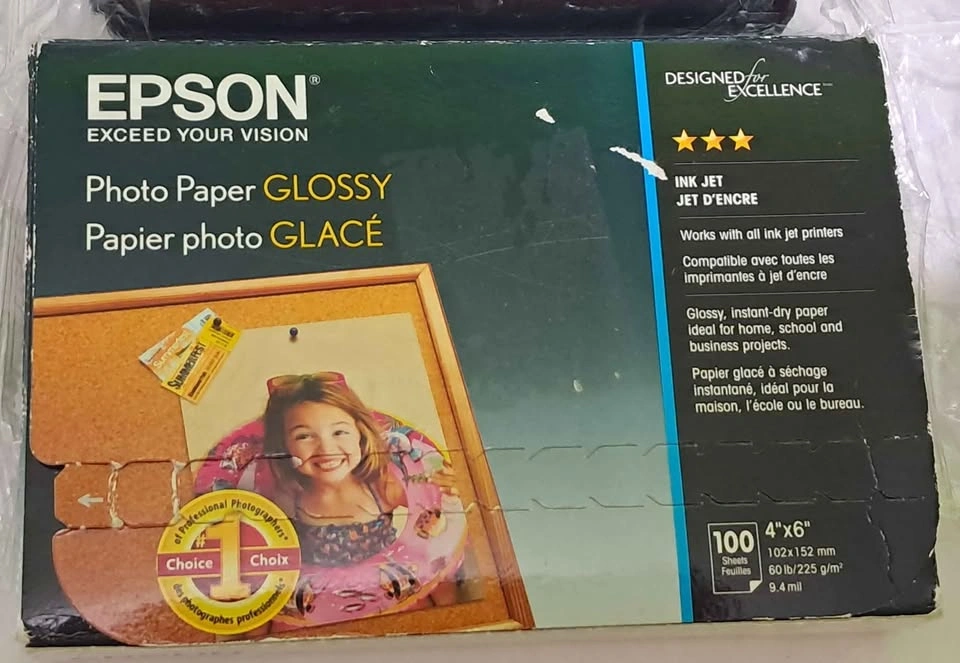 Kodak photo printer cartridge (x5) and One epson premium photo paper 100 sheets One Epson photo paper glossy 100 sheets. Tv room 3