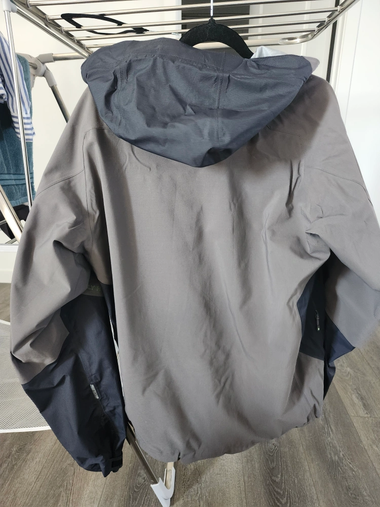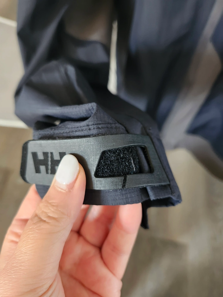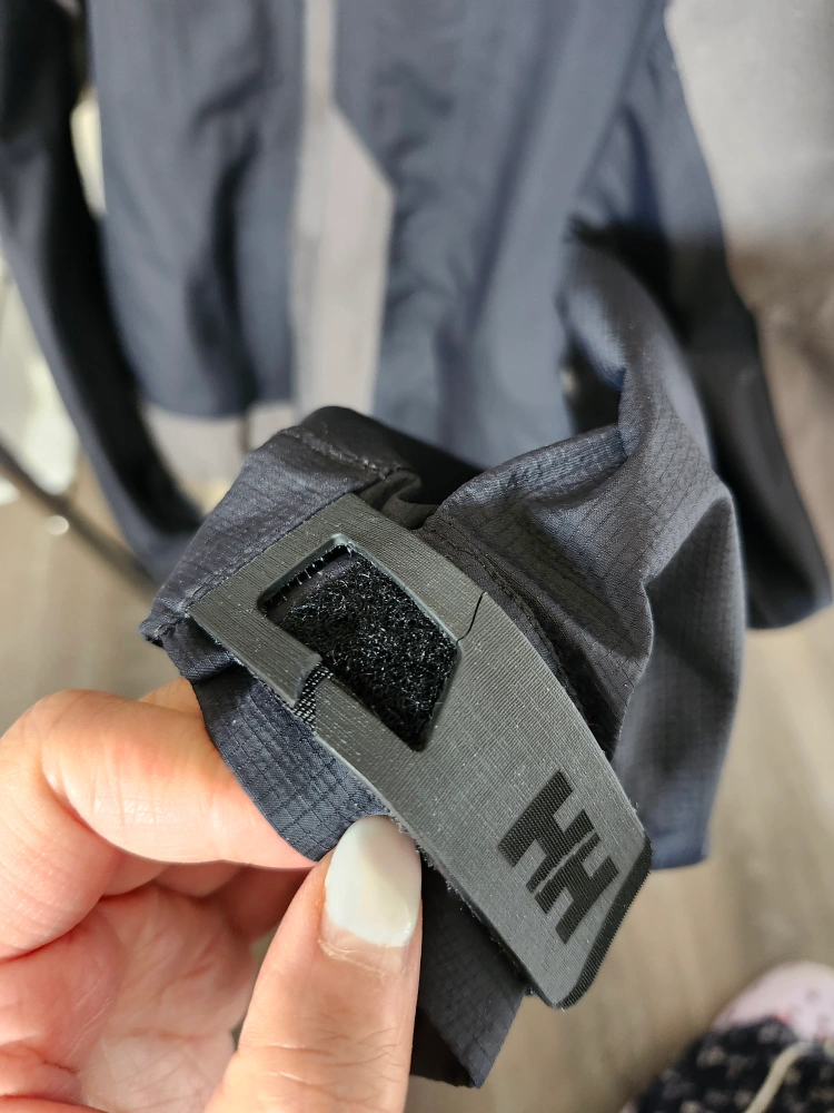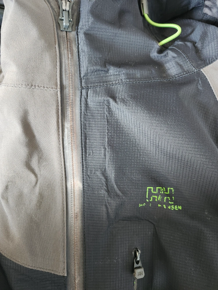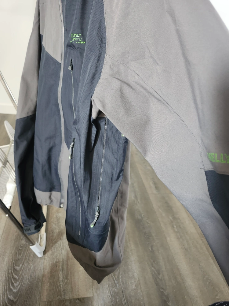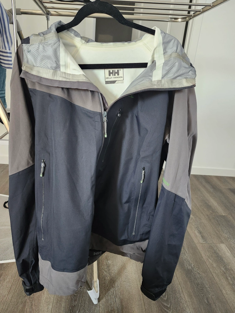 Selling a Helly Hansen jacket ** has minor damage on adjustable cuffs and some discoloration as seen in pictures. It's a functional jacket perfect for outdoor activities. The jacket features a durable construction and a comfortable fit.