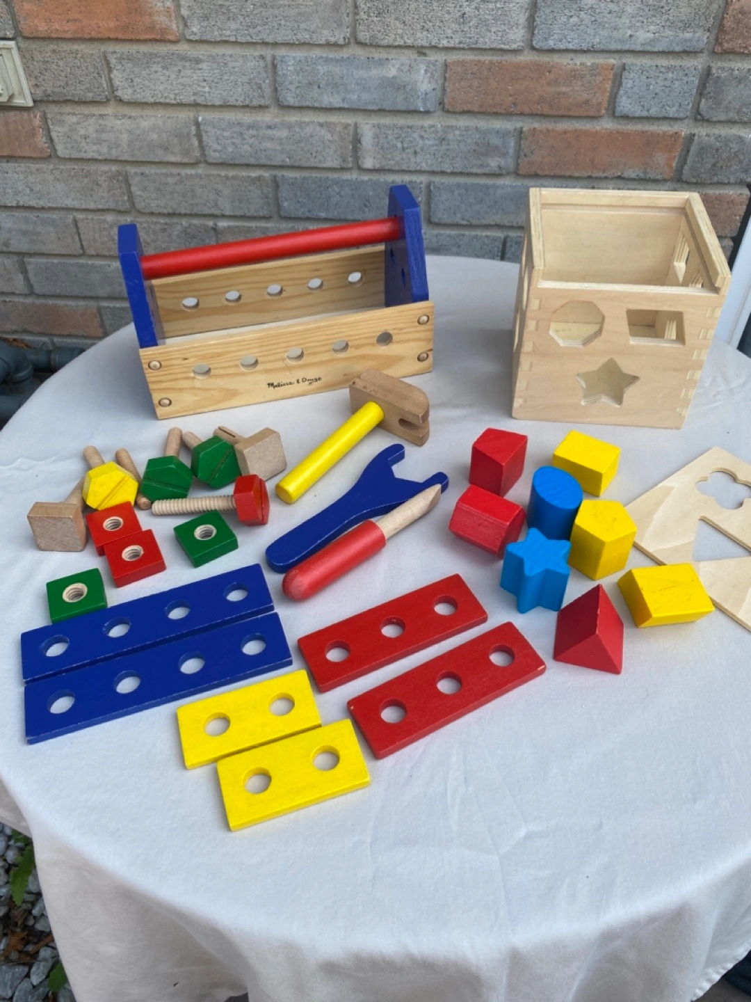Selling Melissa & Doug wooden tool box. It's in great condition and ready for a new home. Includes a variety of colourful wooden tools for hours of fun and learning. I included shape shorter box free because it misses some shapes From clean, pet-free, smoke-free home Pick up only in Acadia SE Price is firm Please check my other ads