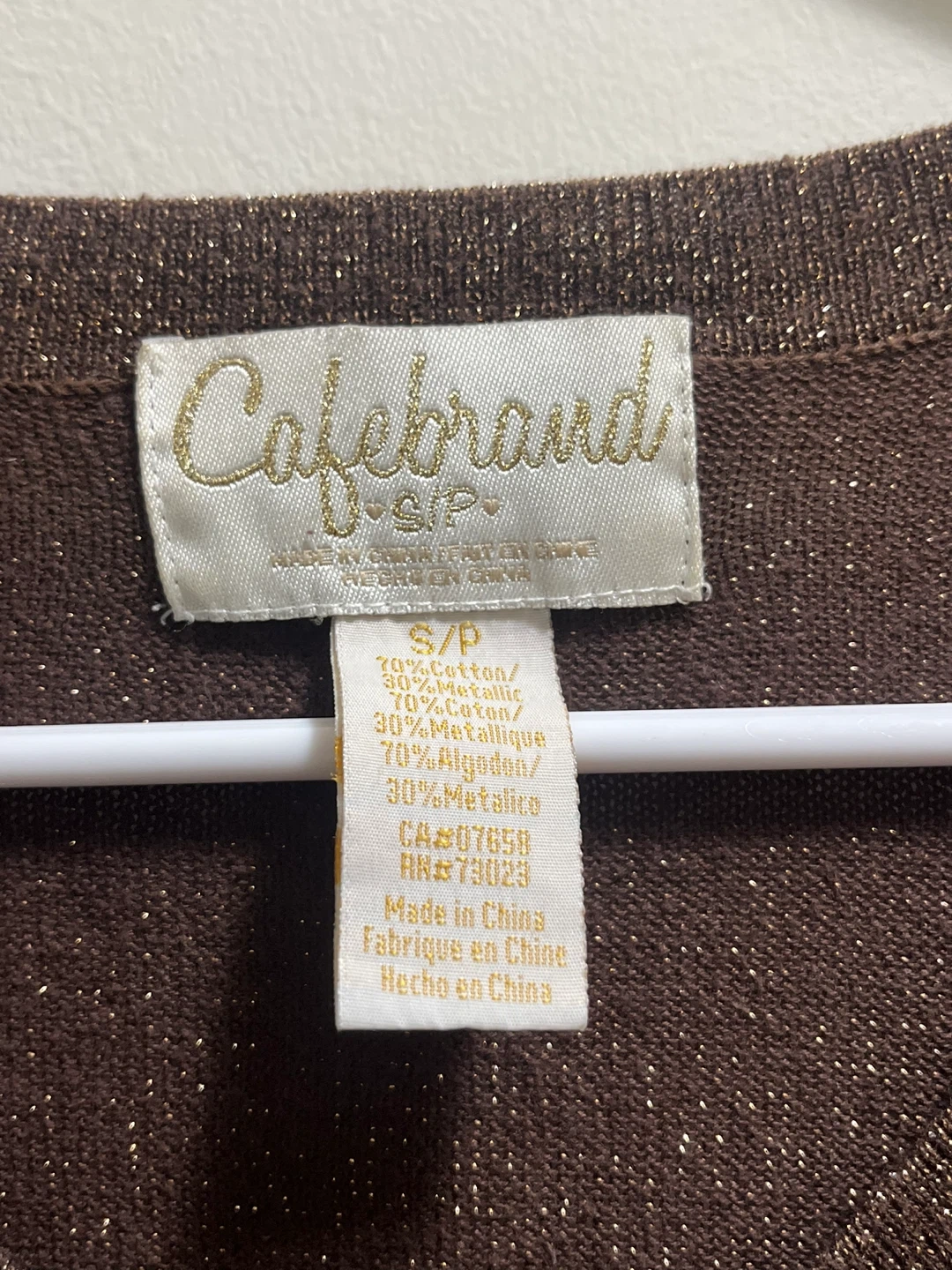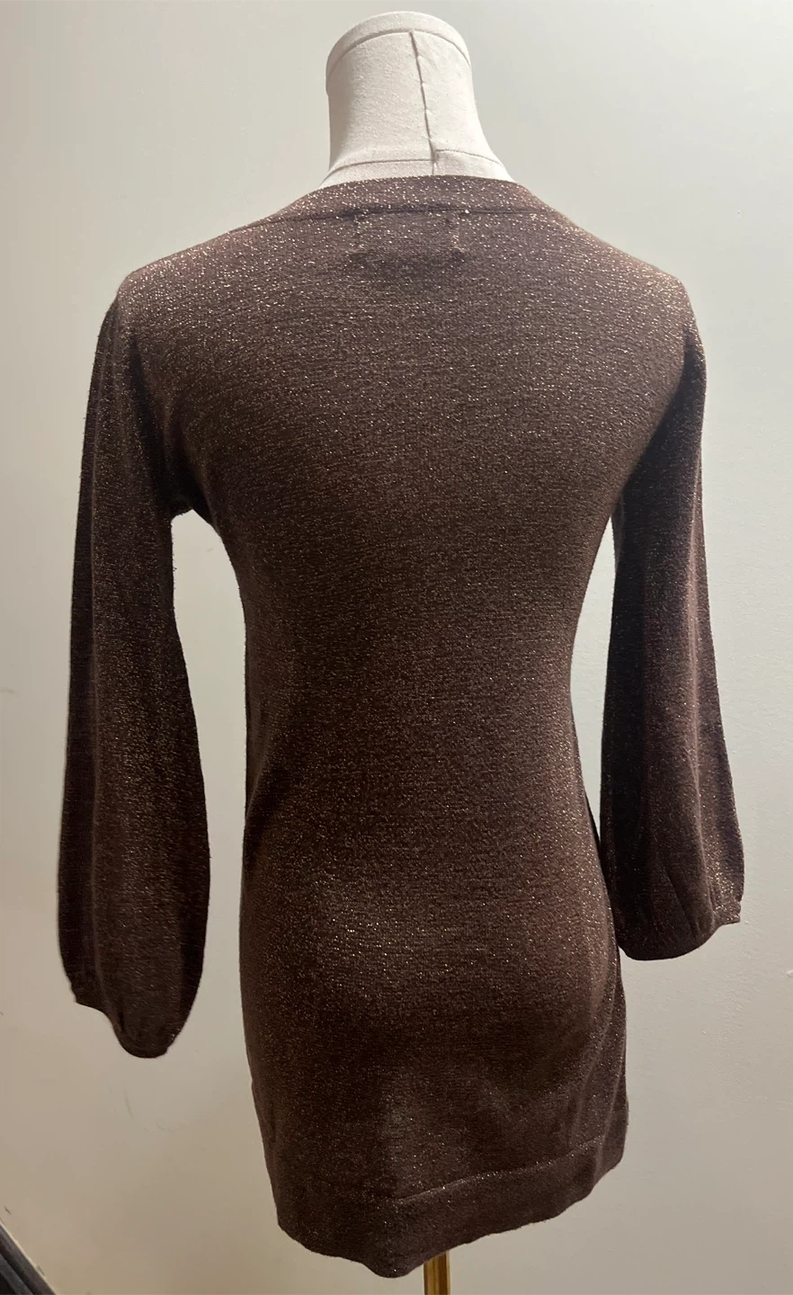Stylish brown V-neck sweater dress. Has sparkly strings sewn within creating a dazzling look this fall! Perfect for casual outings. Excellent condition Pickup Brampton or downtown Toronto Approximate measurements: Ptp 16” (has stretch) Shoulder to hem 28”