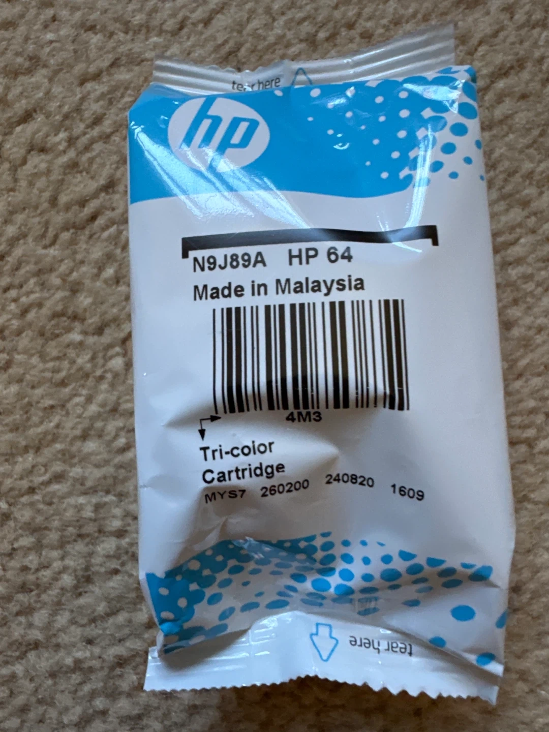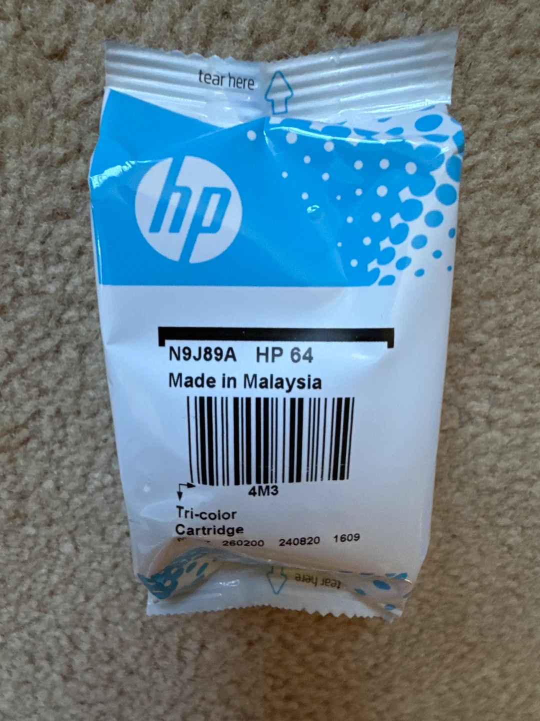 Selling a brand new HP 64 tri-color ink cartridge! It's still sealed in the original packaging. The model number is N9J89A. Perfect for all your printing needs! Purchased at Staples for Retail $60 plus