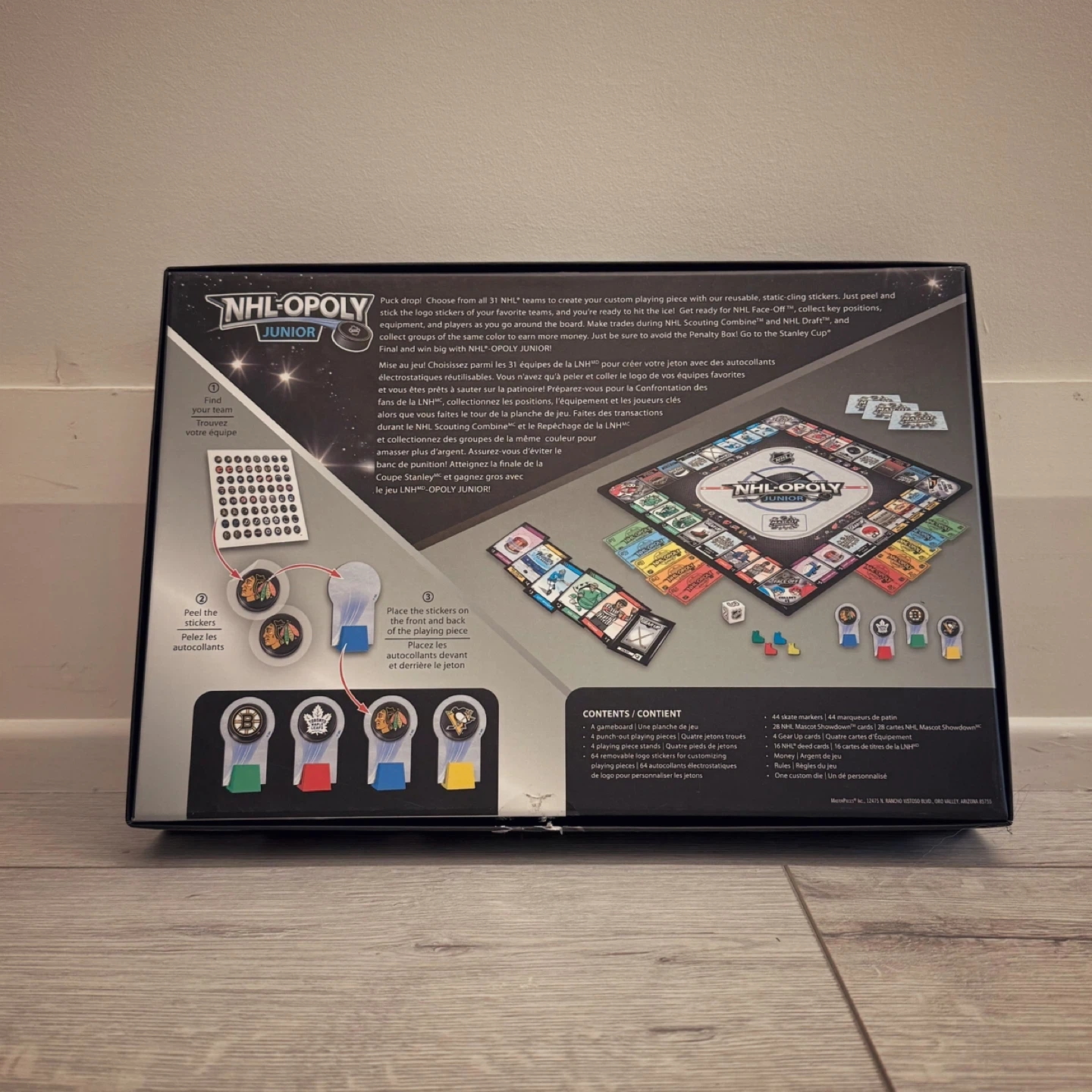 Get ready for hockey season! Selling a complete NHL-OPOLY Junior board game! Game was played a few times, so some of the team stickers were used. Cash only please.