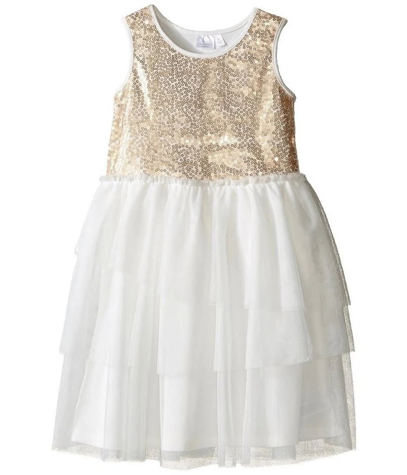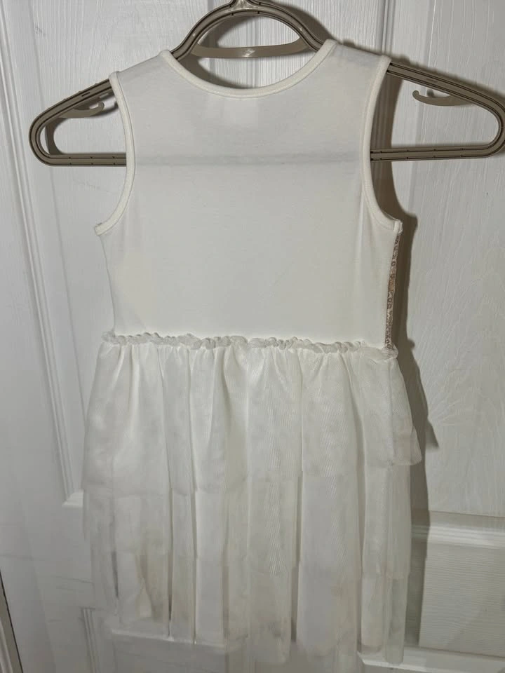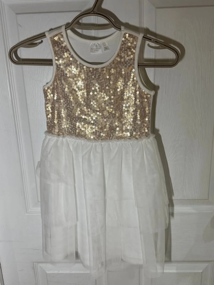New with tags. Size: 5T Color: Gold sequins with ivory mesh layered skirt A must-have dress to spruce up the season! Fun fit-and-flare silhouette features a sequins embellished bodice with a mesh layered skirt. * Round neckline * Sleeveless construction * Pullover design * Straight hemline * 100% polyester * Lining: 100% ๐ต Cash preferred. ๐ Pick up near Scarborough Town Centre or Upper Middle Rd and Walker's Line in Burlington. Check out my other listings, thanks for looking! โบ๏ธ