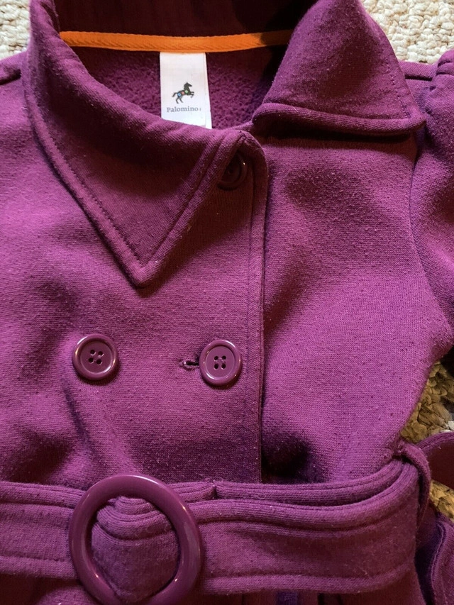 This fashionable little coat is the cutest. Made of cotton-polyester, it feels like a soft comfy sweatshirt. Note that it is not lined. Pick up in Rocky Ridge NW bin system.